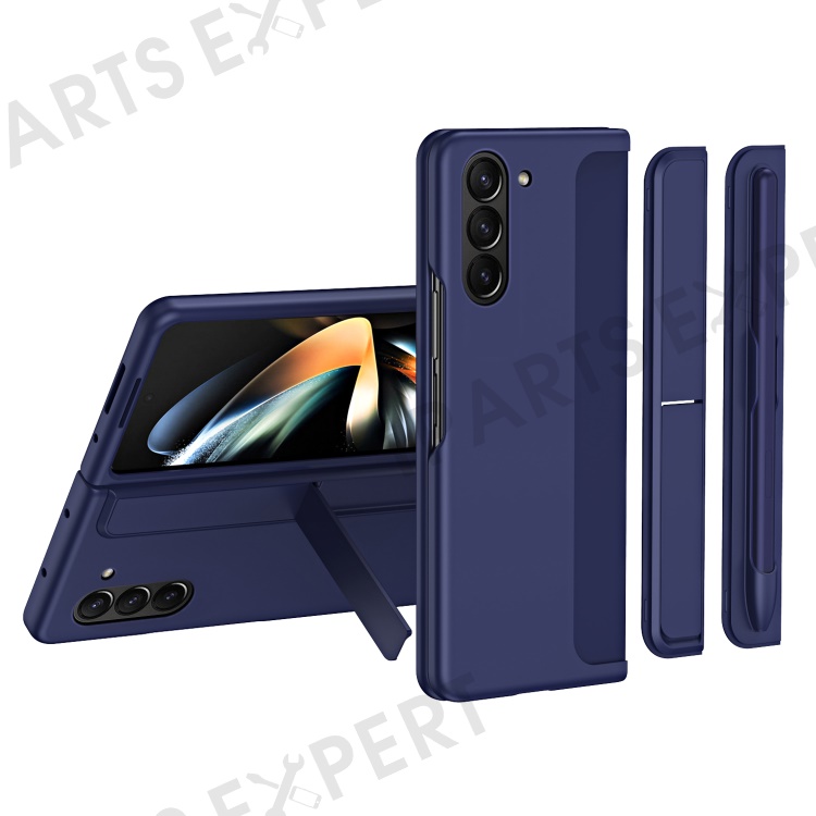 For Samsung Galaxy Z Fold5 5G Rubberized Phone Cover Kickstand Hard PC Phone Case with Pen and Pen Holder - Sapphire