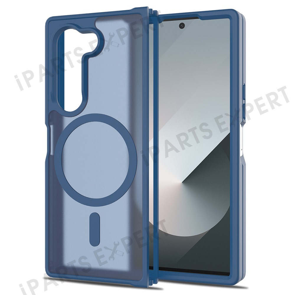 For Samsung Galaxy Z Fold6 5G Magnetic Case TPU Frame Acrylic Back Phone Cover Skin Touch - Blue