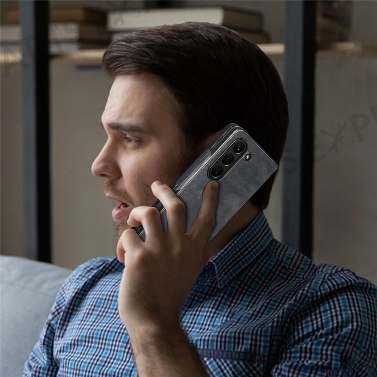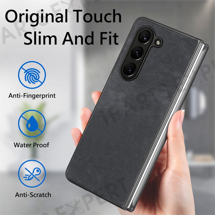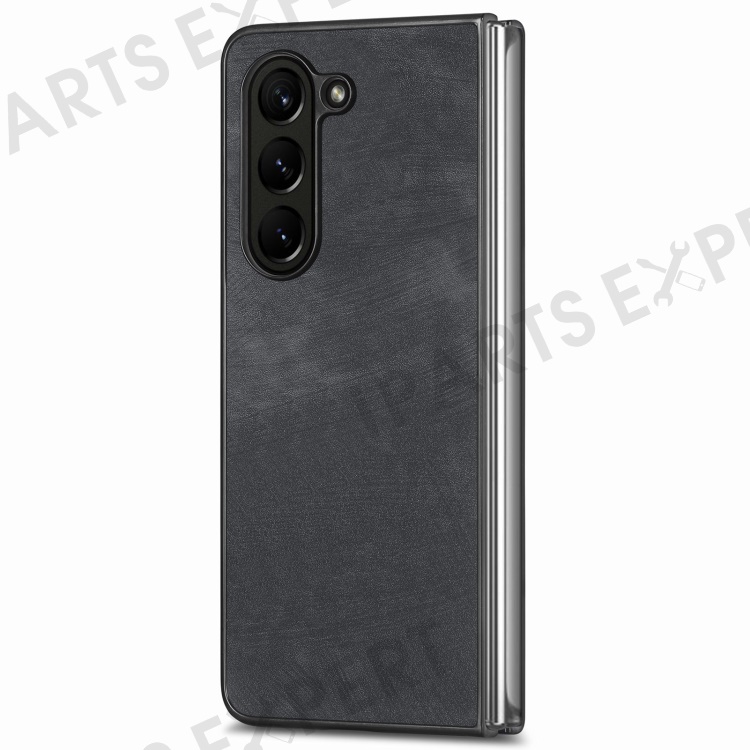 For Samsung Galaxy Z Fold6 5G Case Retro PU Leather Coated PC Folding Phone Cover - Black