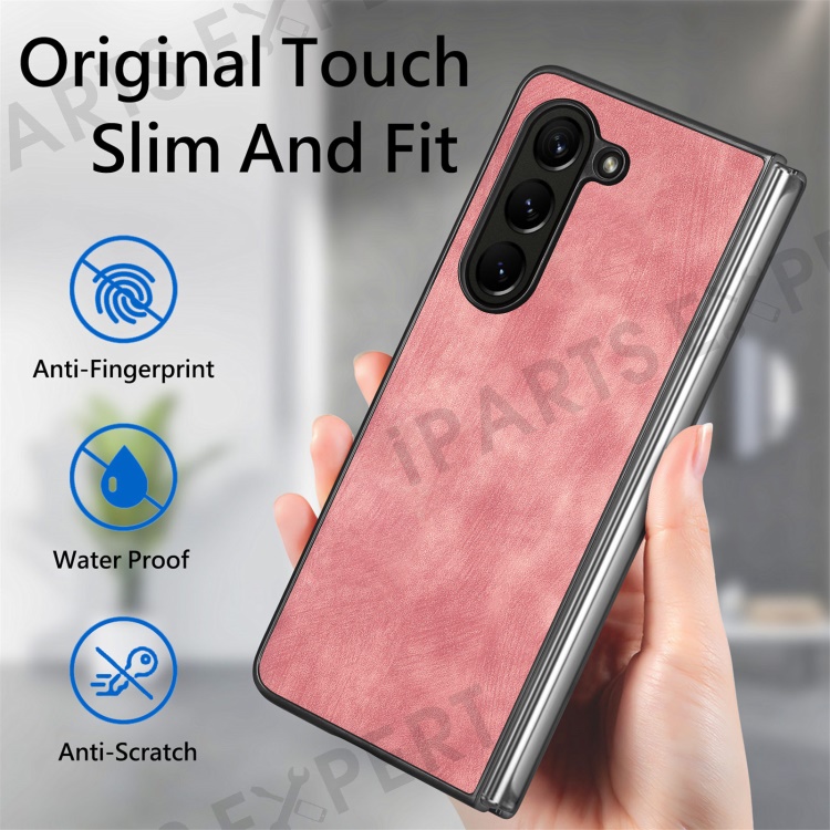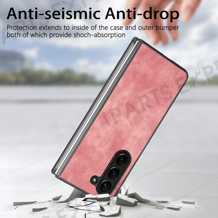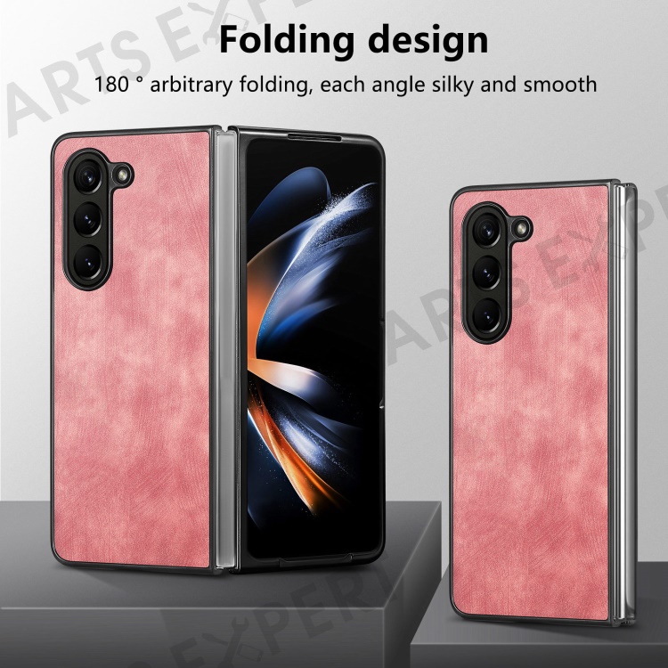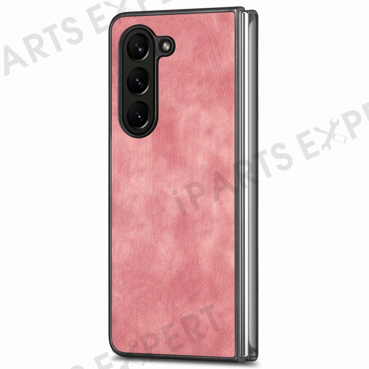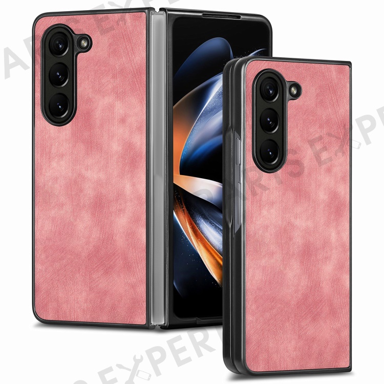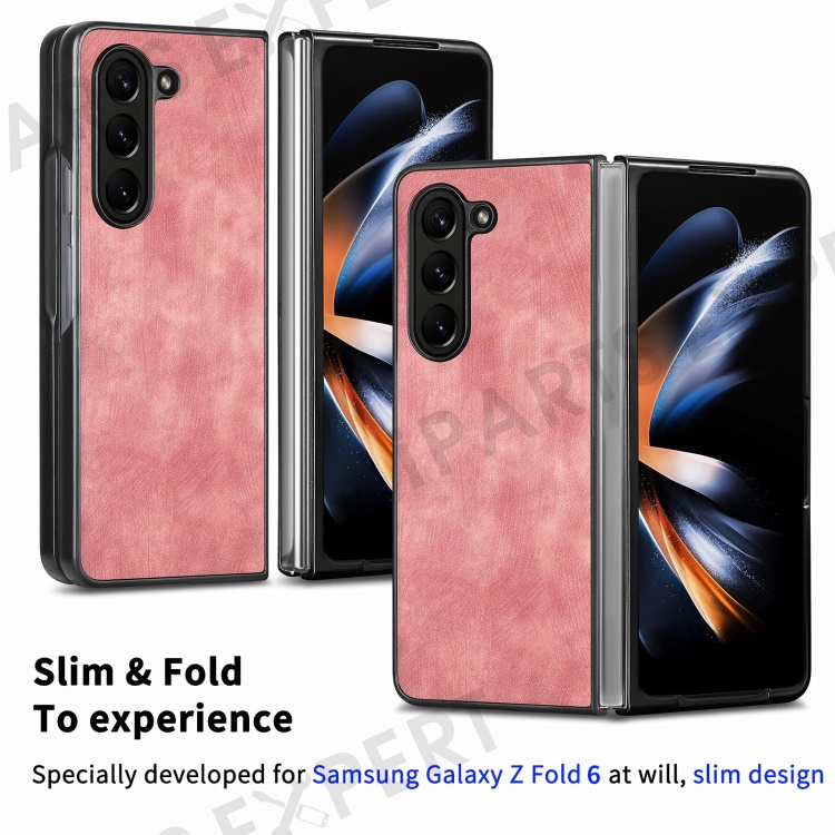 For Samsung Galaxy Z Fold6 5G Case Retro PU Leather Coated PC Folding Phone Cover - Pink
