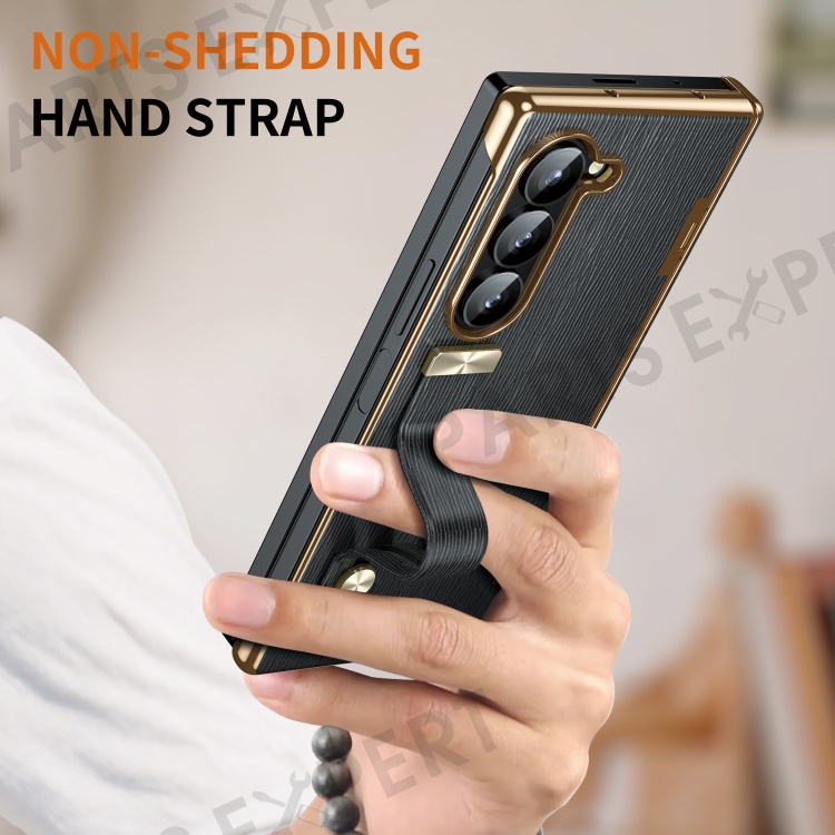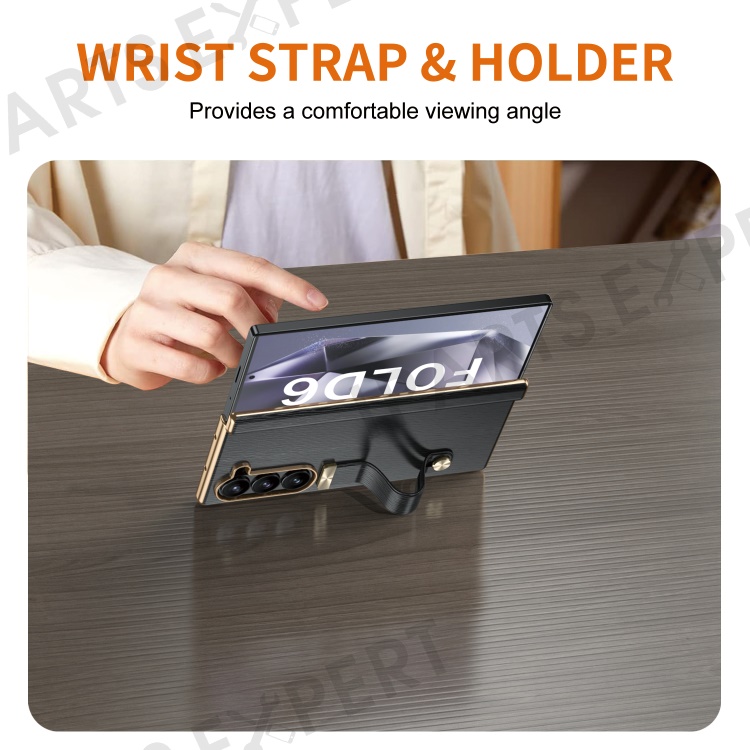 For Samsung Galaxy Z Fold6 5G Case Wrist Band Hinge Protection Leather+PC Phone Cover - Black