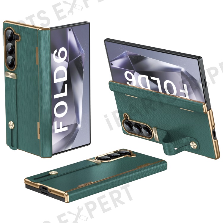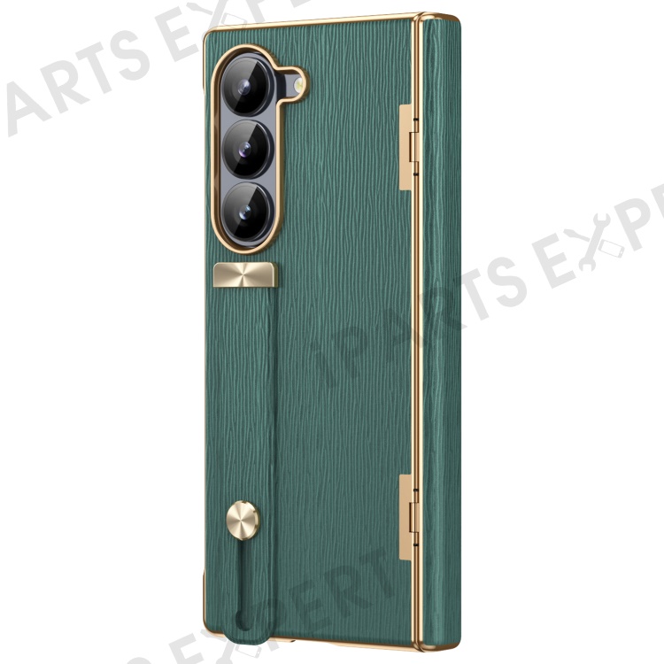 For Samsung Galaxy Z Fold6 5G Case Wrist Band Hinge Protection Leather+PC Phone Cover - Green