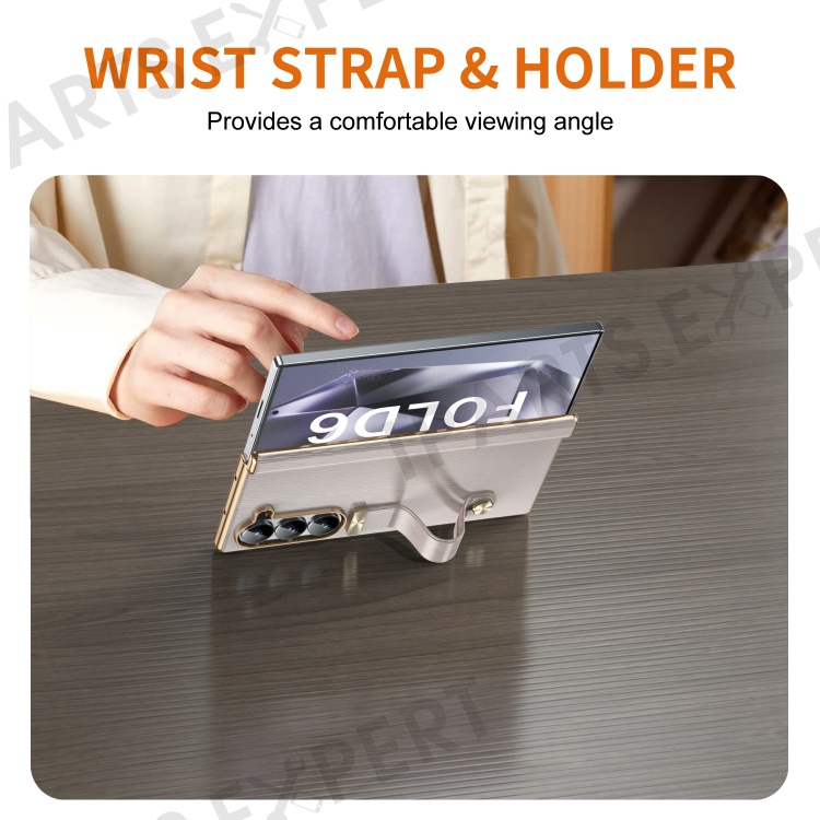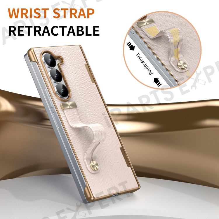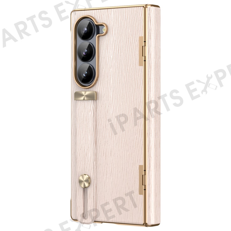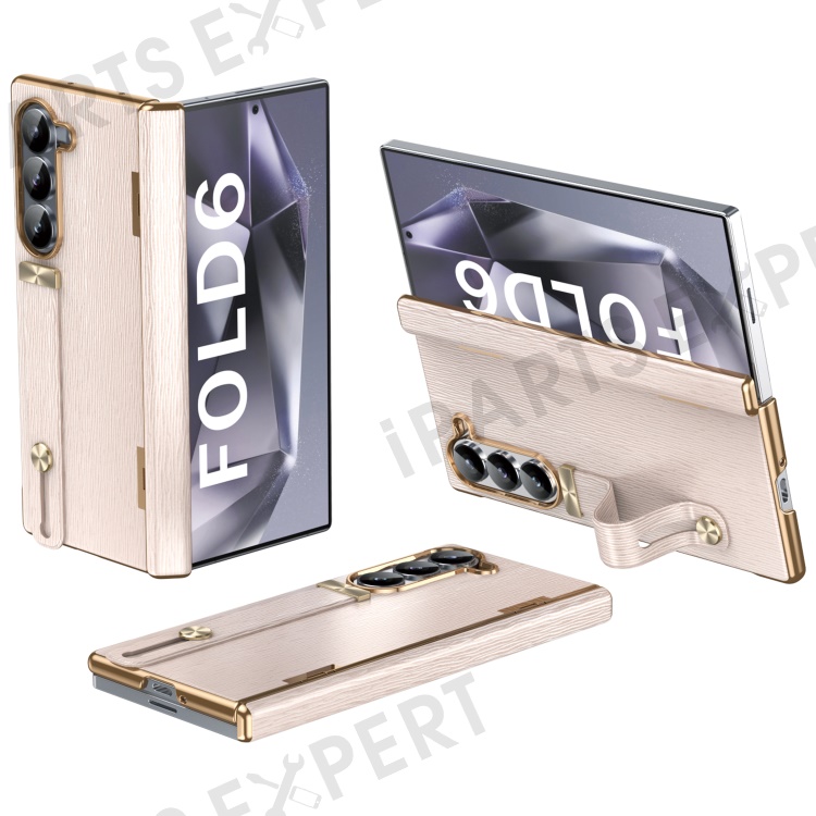 For Samsung Galaxy Z Fold6 5G Case Wrist Band Hinge Protection Leather+PC Phone Cover - Pink