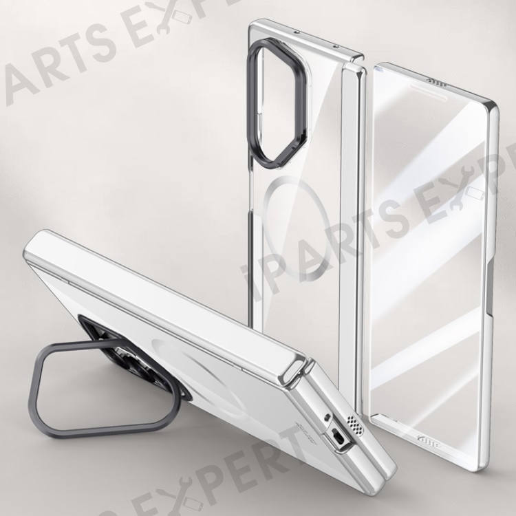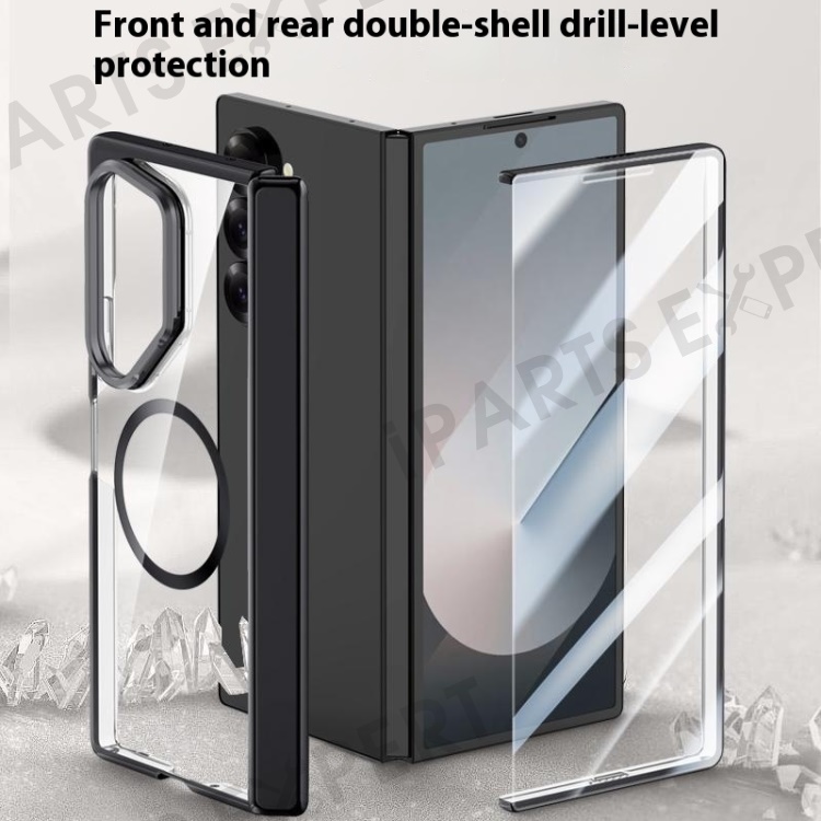 For Samsung Galaxy Z Fold6 5G Clear Case PC+Acrylic Kickstand Magnetic Phone Cover with Screen Film - Silver