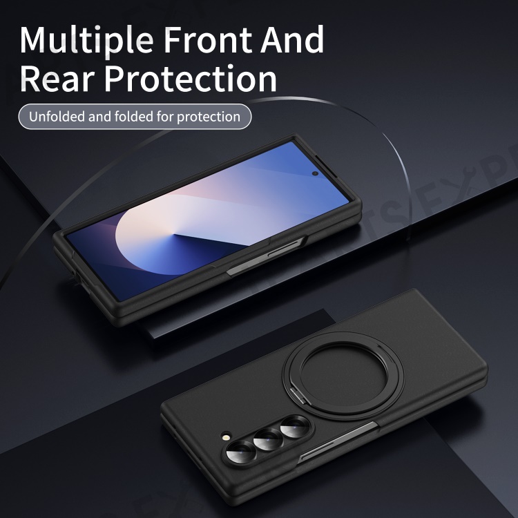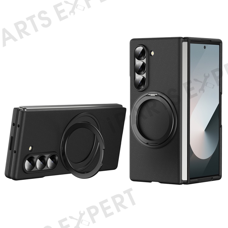 For Samsung Galaxy Z Fold6 5G Magnetic Case Ring Kickstand Hard PC Cover with Tempered Glass Screen Film - Black