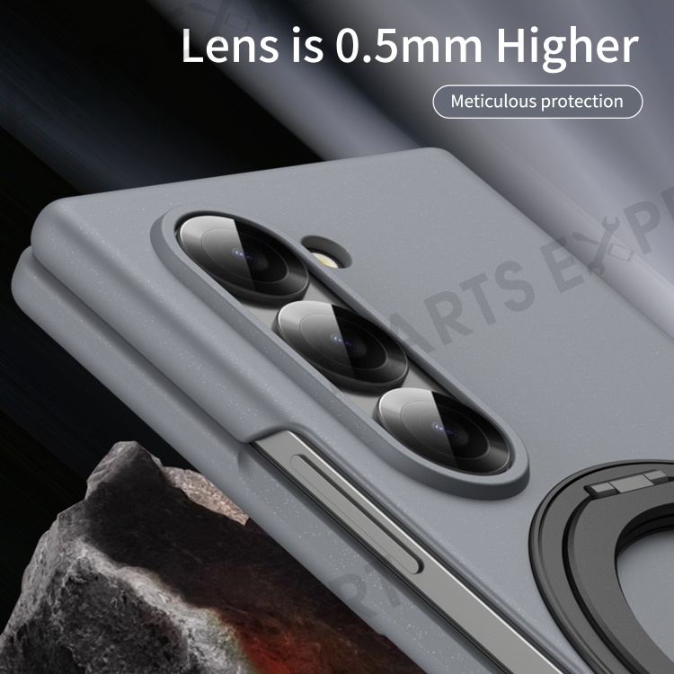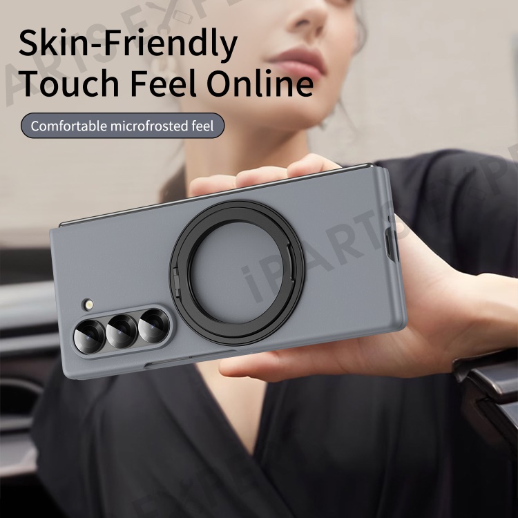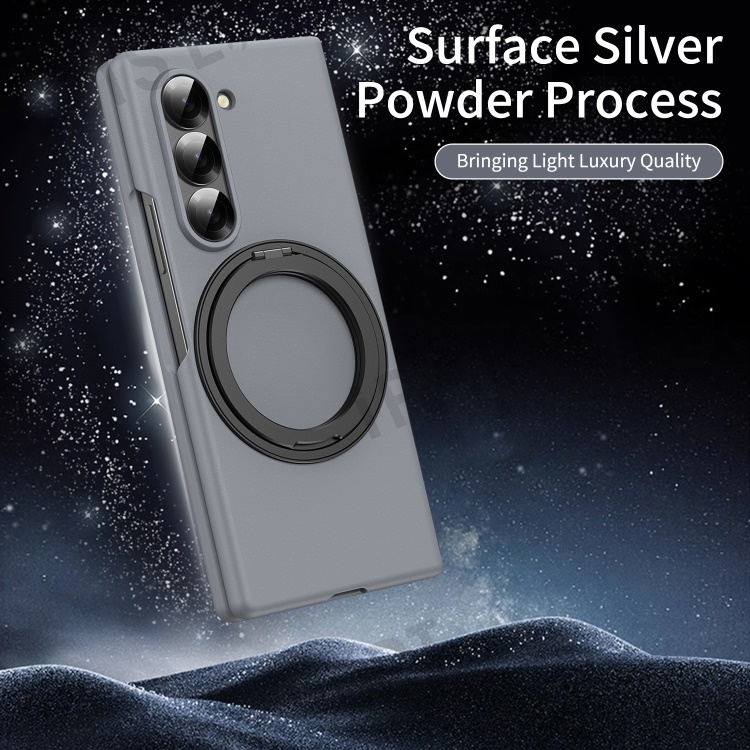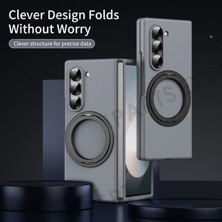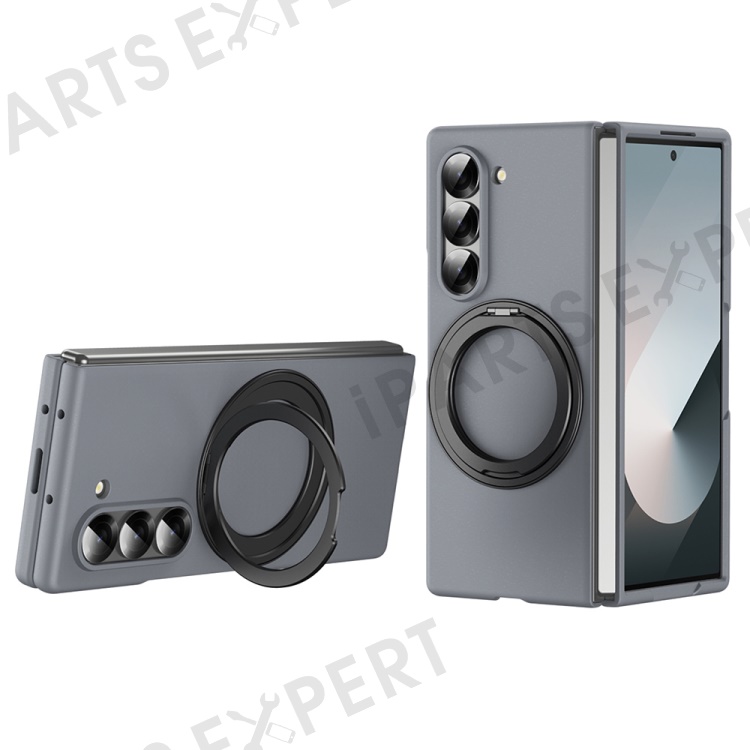 For Samsung Galaxy Z Fold6 5G Magnetic Case Ring Kickstand Hard PC Cover with Tempered Glass Screen Film - Grey