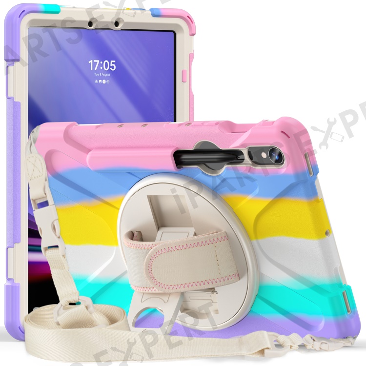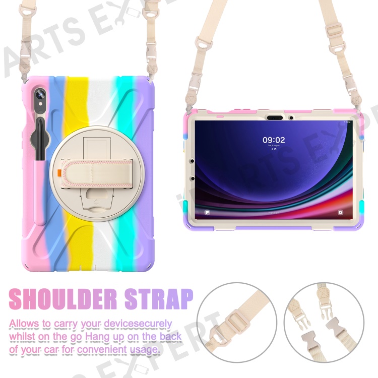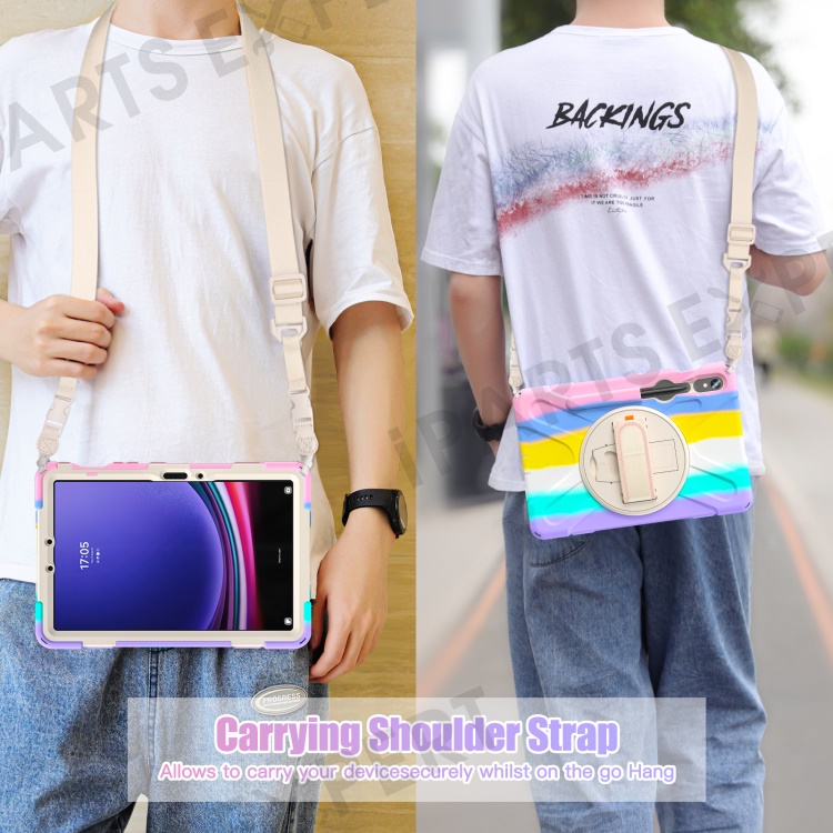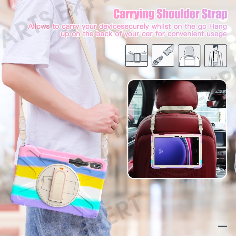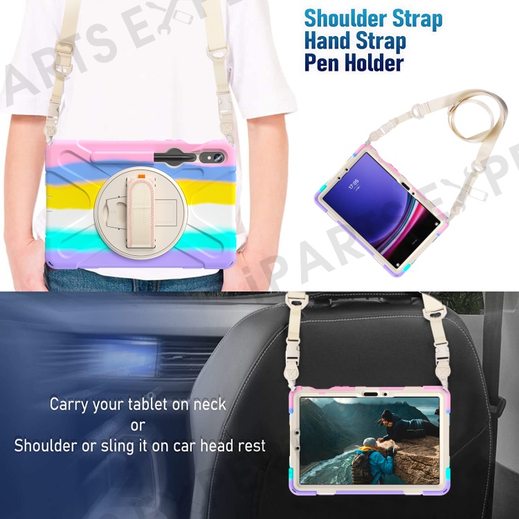 For Samsung Galaxy Tab S10 Lite / S10 FE / S9 FE / S9 X710 / S8 X700 / S7 T870 PC+Silicone Tablet Case Kickstand Cover with Straps - Colorful Pink