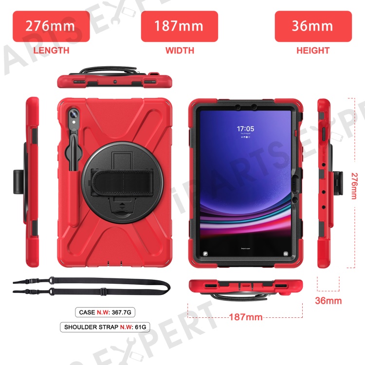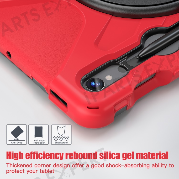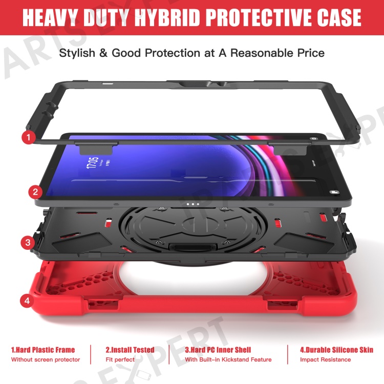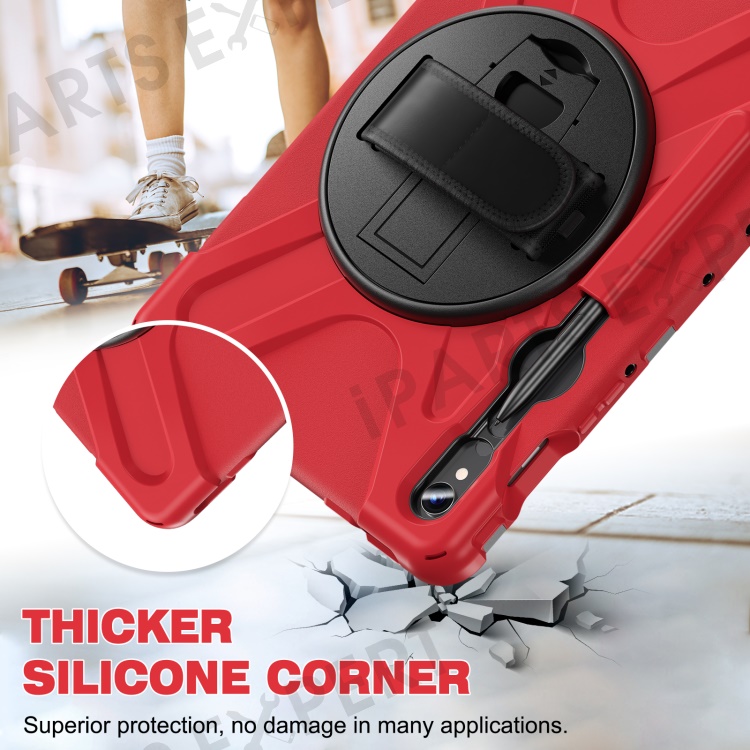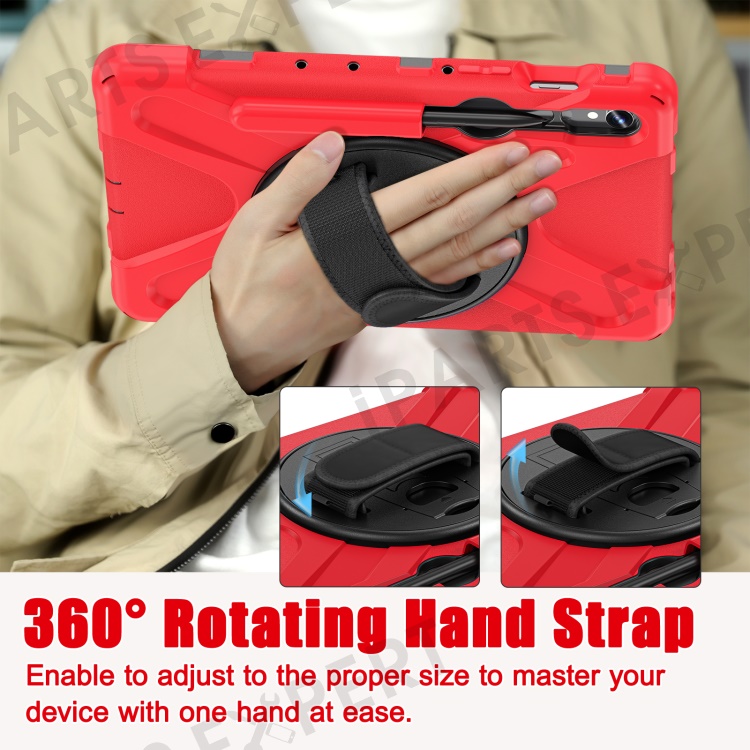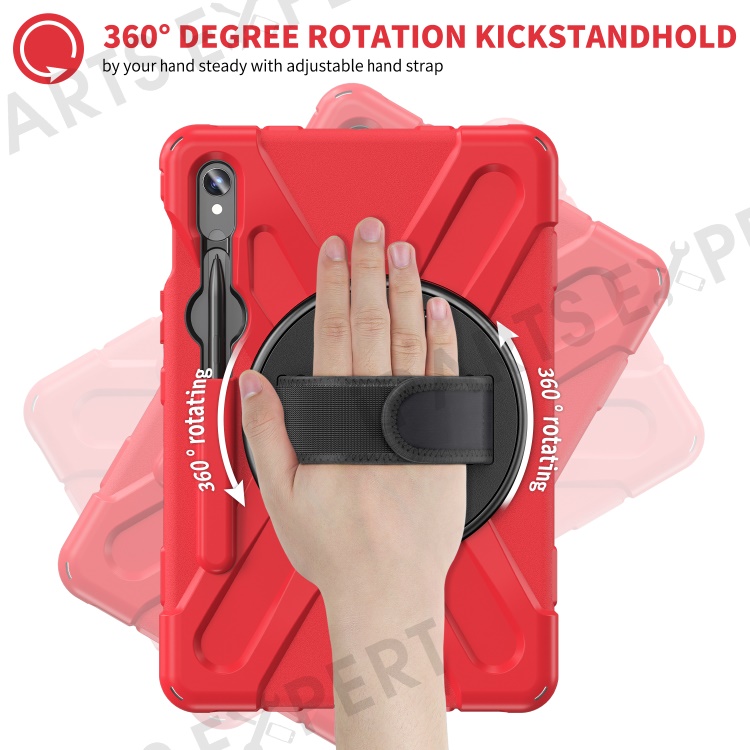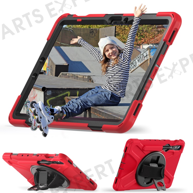 For Samsung Galaxy Tab S10 Lite / S10 FE / S9 FE / S9 X710 / S8 X700 / S7 T870 Wrist Strap Tablet Case PC+Silicone Kickstand Cover - Red