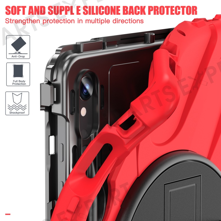 Integrated 360-degree rotary kickstand with a magic tape hand band frees your hands for landscape or portrait viewing