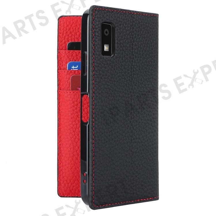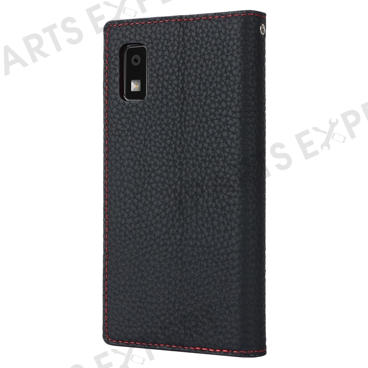 For Sharp Aquos Wish3 Genuine Cow Leather Wallet Case Litchi Texture Stand Phone Cover with Strap - Black