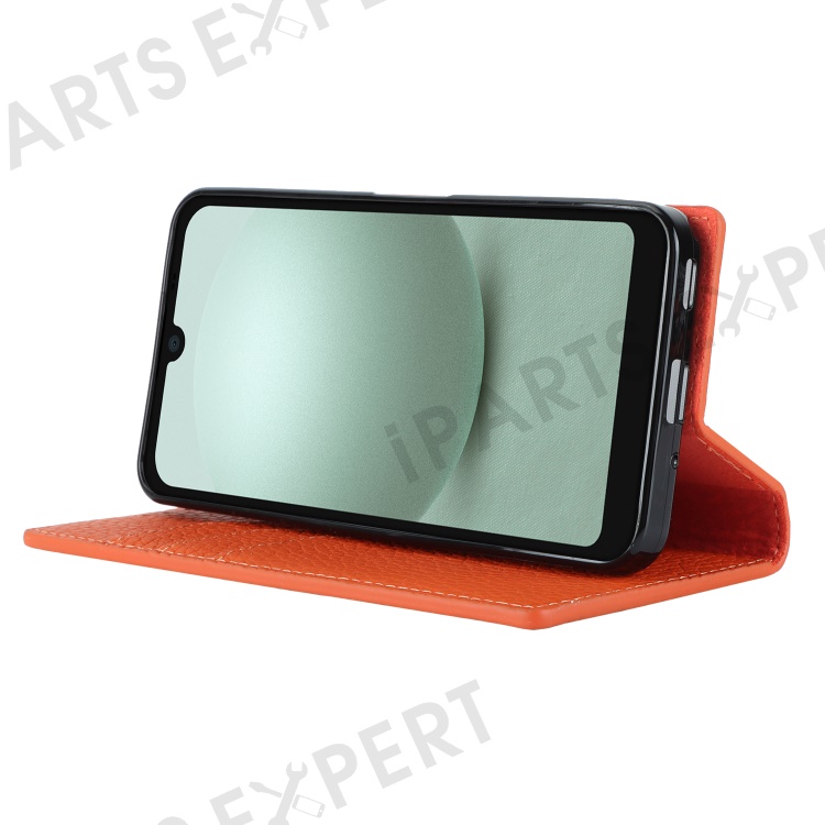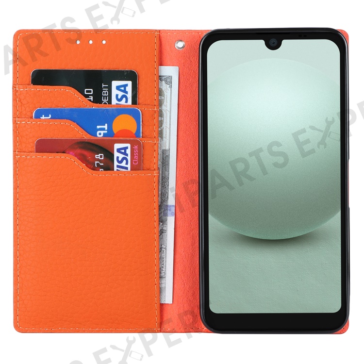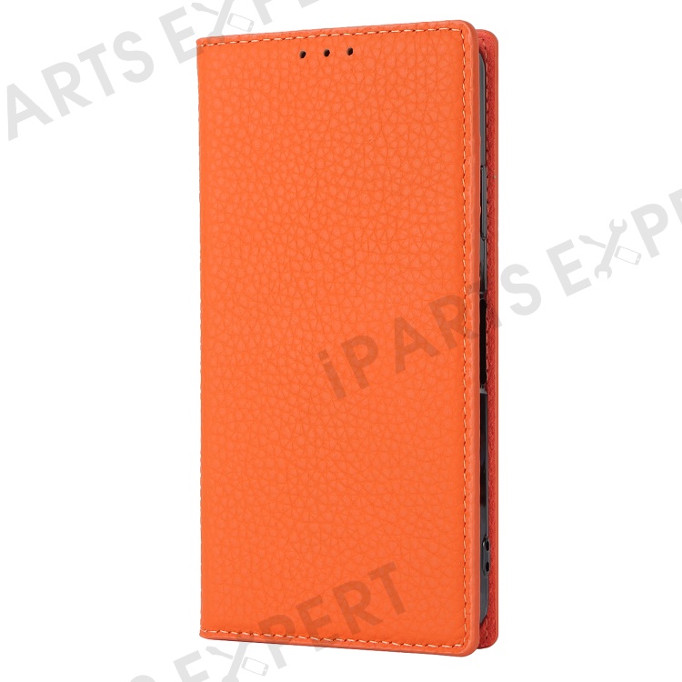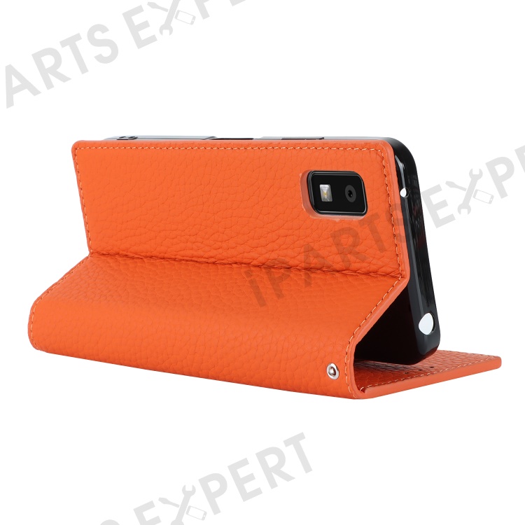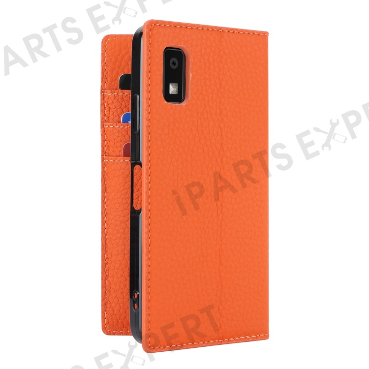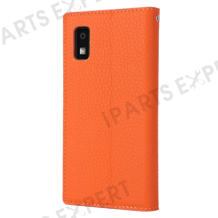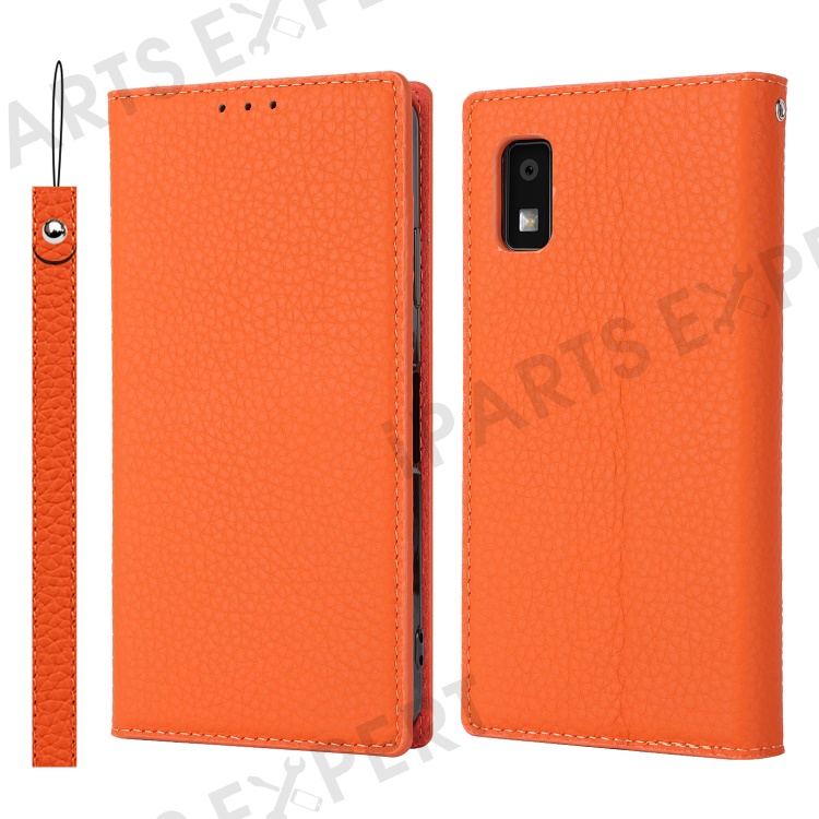 For Sharp Aquos Wish3 Genuine Cow Leather Wallet Case Litchi Texture Stand Phone Cover with Strap - Orange