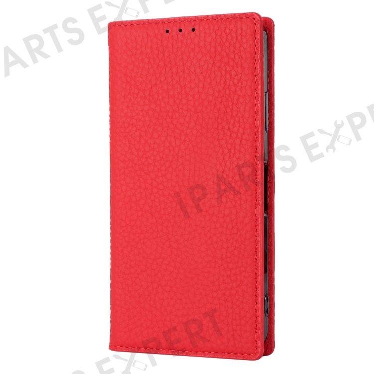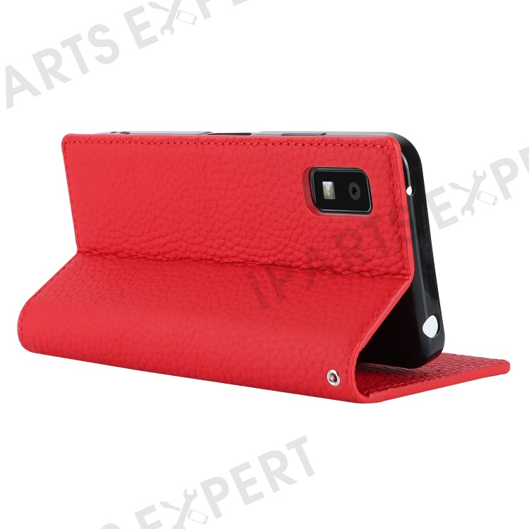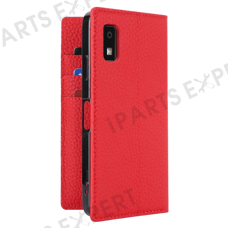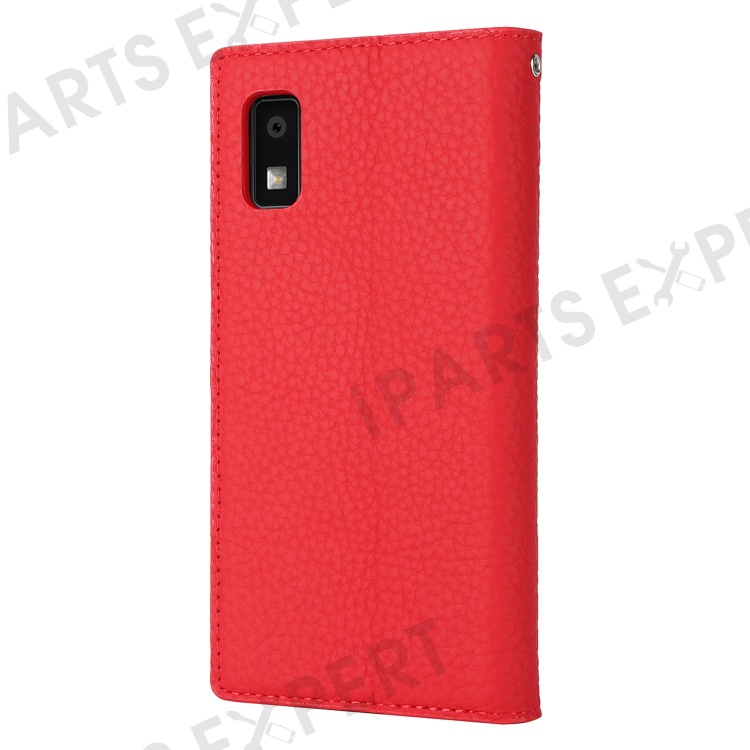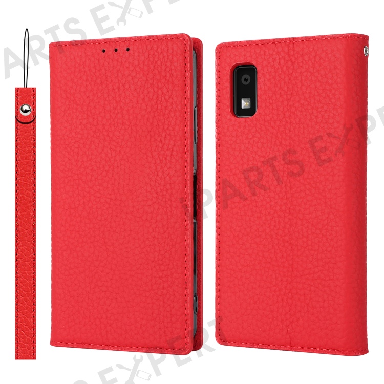 For Sharp Aquos Wish3 Genuine Cow Leather Wallet Case Litchi Texture Stand Phone Cover with Strap - Red