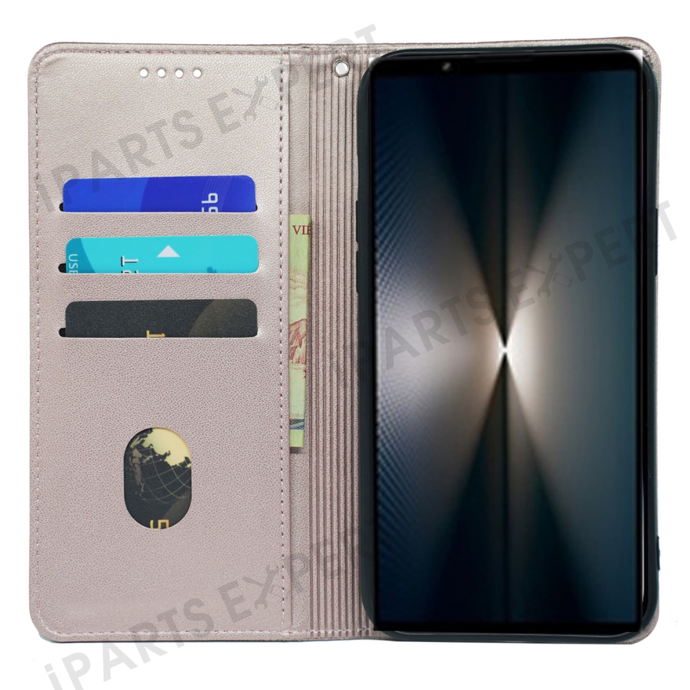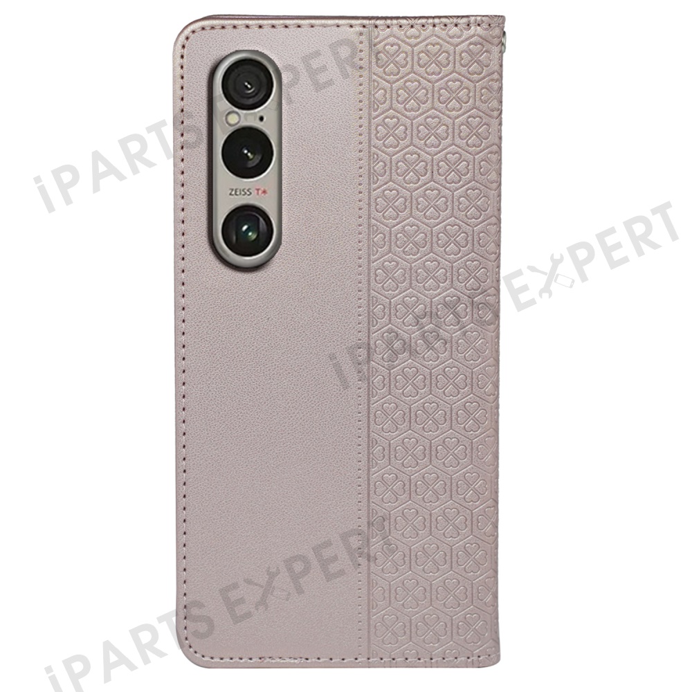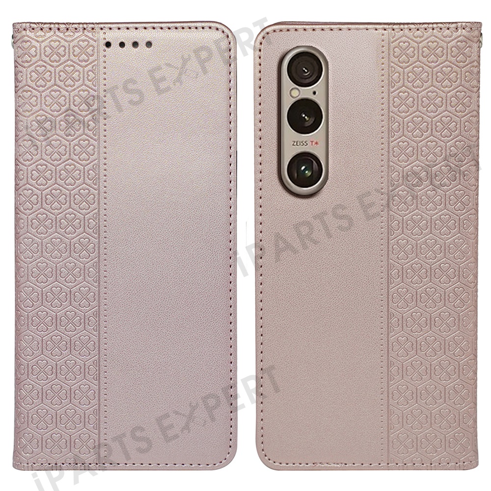 For Sony Xperia 1 V Case Four Leaf Clover Leather Flip Phone Cover Stand Wallet - Rose Gold