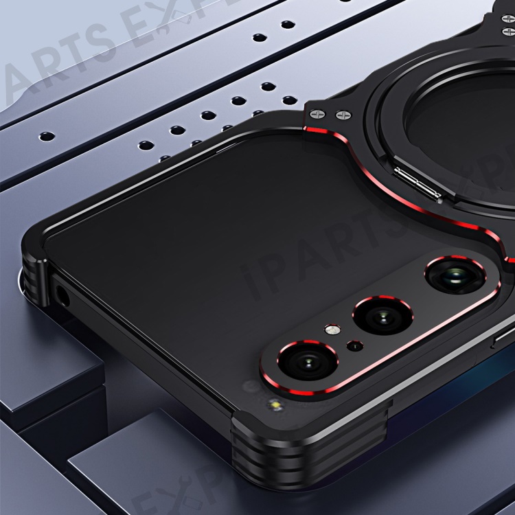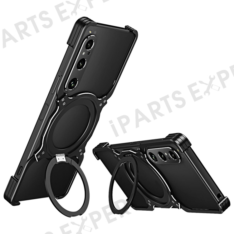 For Sony Xperia 1 V Kickstand Case Metal Bumper Magnetic Phone Cover - Black / Silver