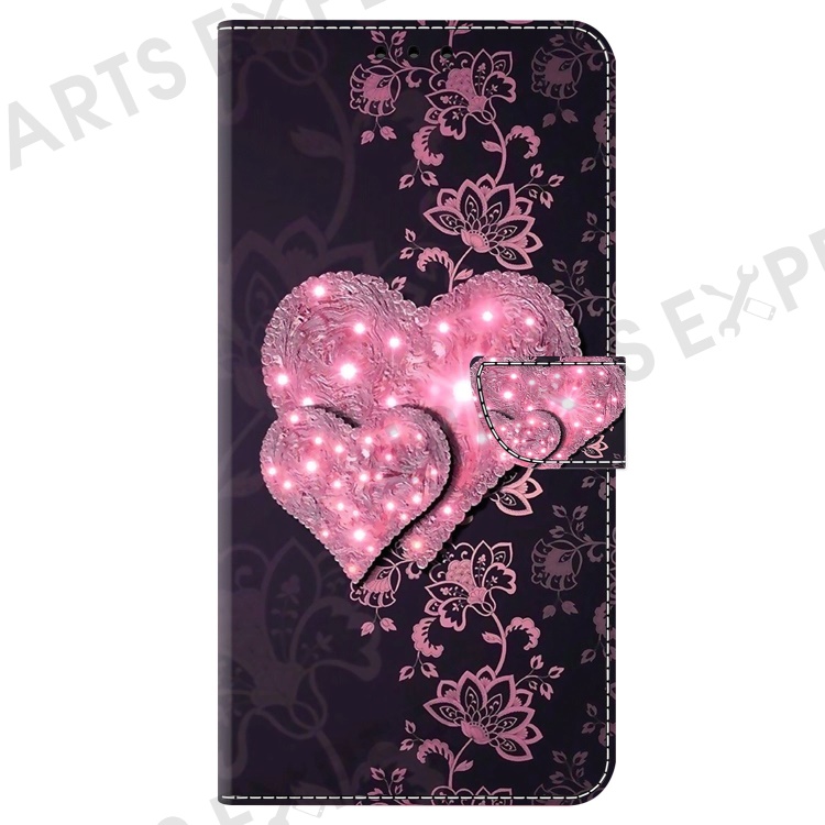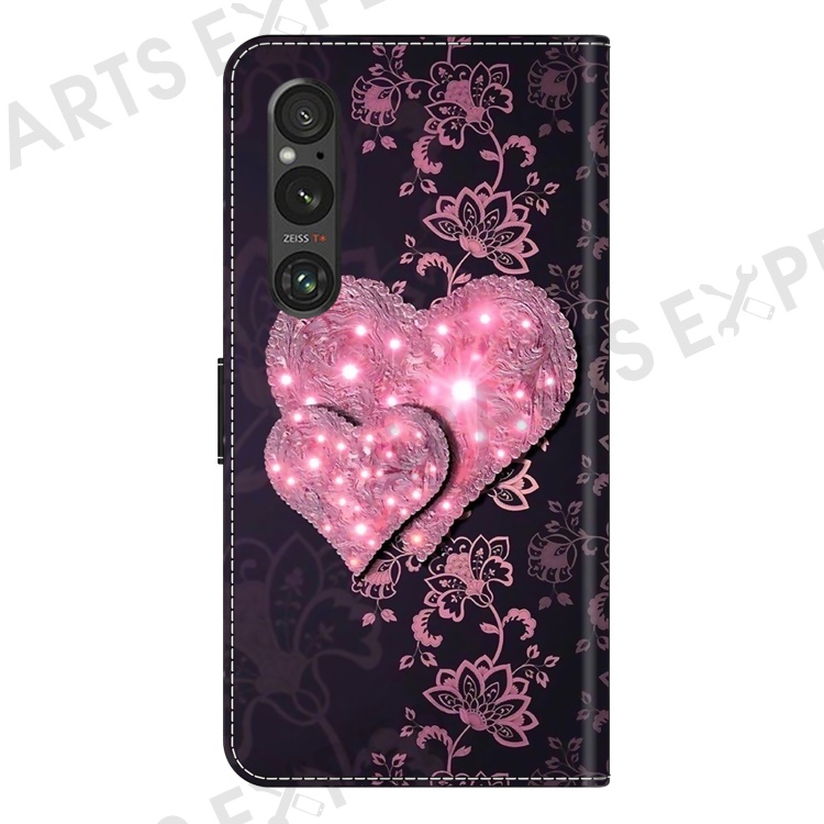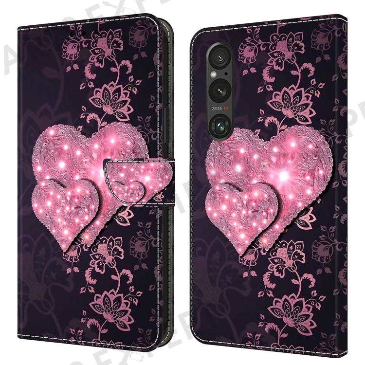 For Sony Xperia 1 V Wallet PU Leather Protective Case 3D Pattern Printing Stand Phone Cover - Lace Hearts