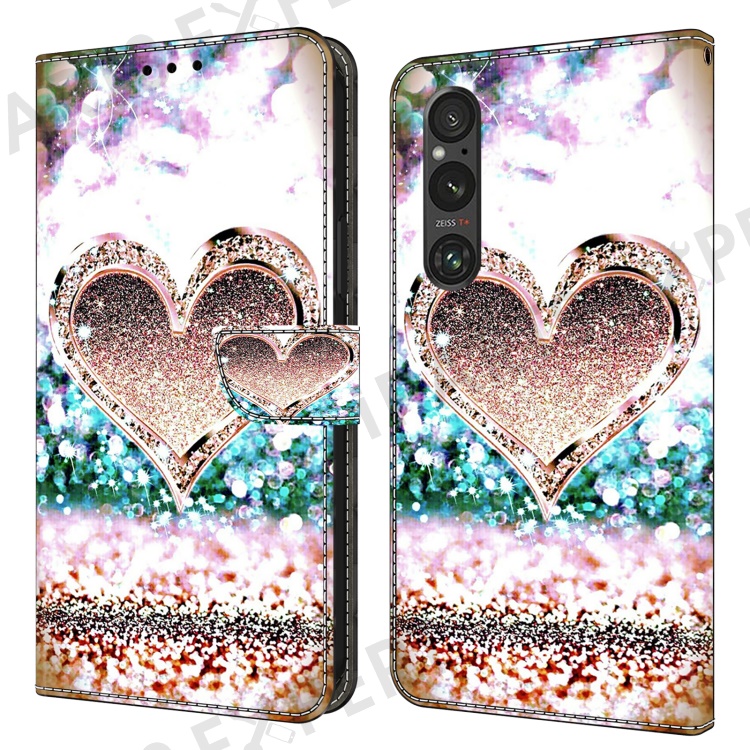 For Sony Xperia 1 V Wallet PU Leather Protective Case 3D Pattern Printing Stand Phone Cover - Pink Diamond Heart