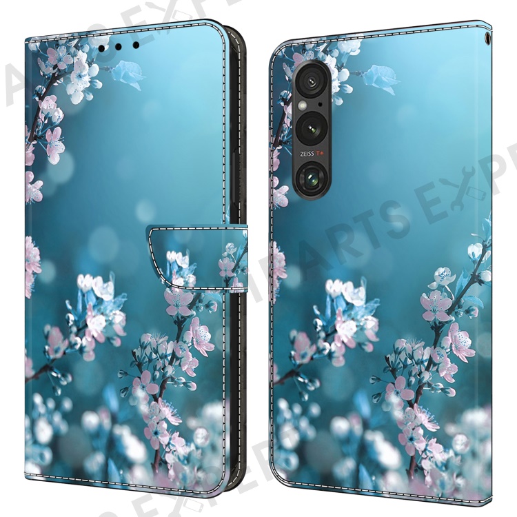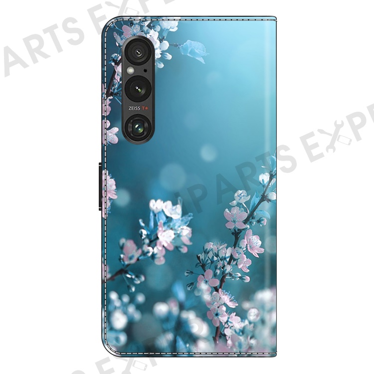 For Sony Xperia 1 V Wallet PU Leather Protective Case 3D Pattern Printing Stand Phone Cover - Plum Blossoms