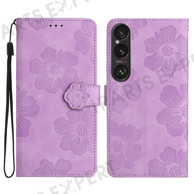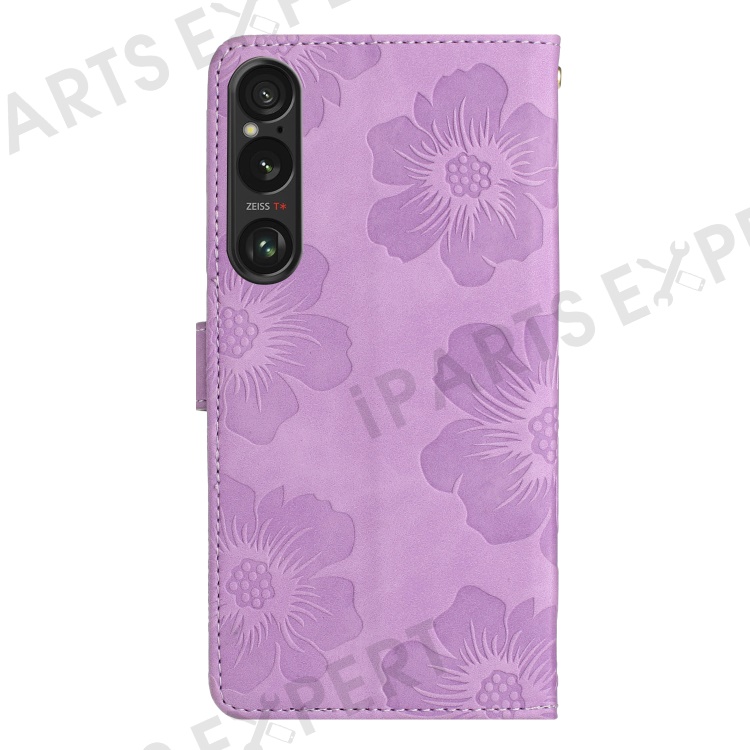 For Sony Xperia 1 VI Case Flower Design Leather Wallet Phone Cover with Wrist Strap - Purple
