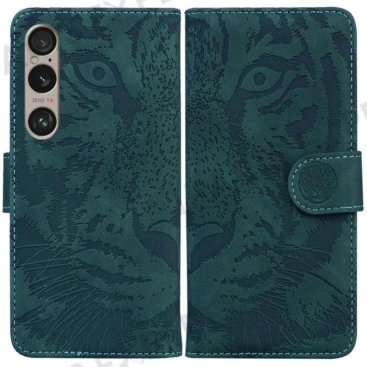 For Sony Xperia 1 VI Wholesale Phone Case Tiger Pattern Leather Wallet Cover - Green