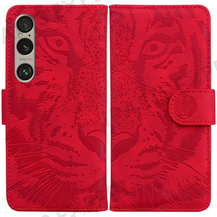 For Sony Xperia 1 VI Wholesale Phone Case Tiger Pattern Leather Wallet Cover - Red