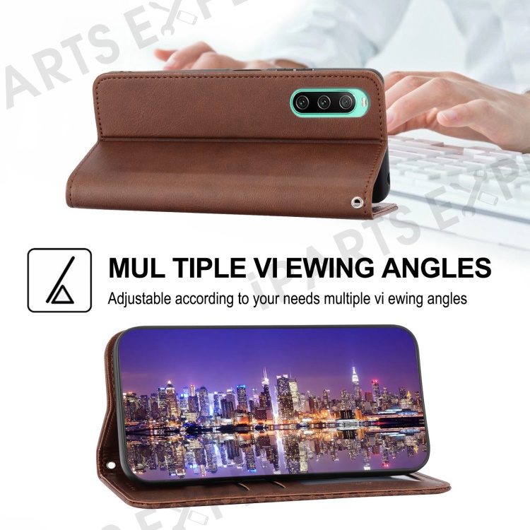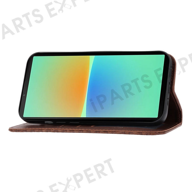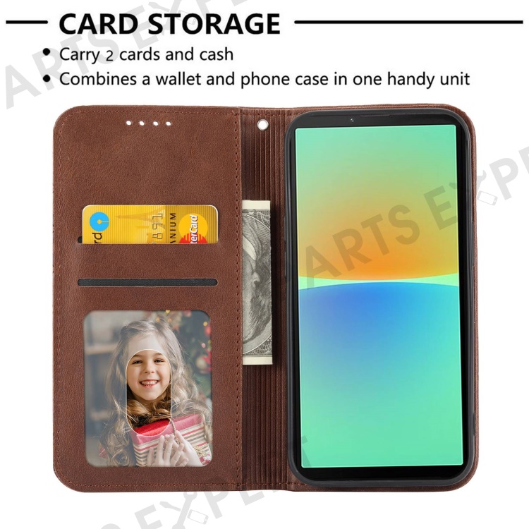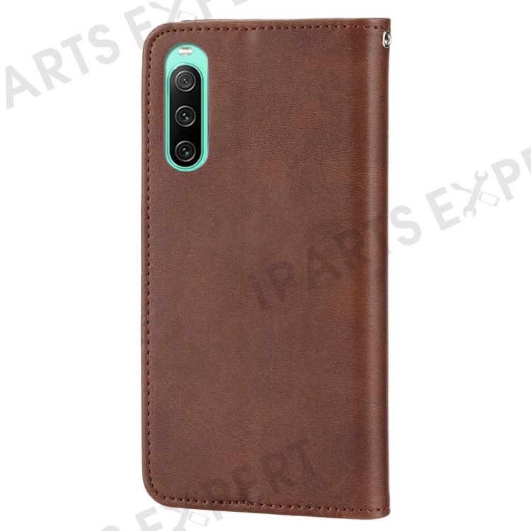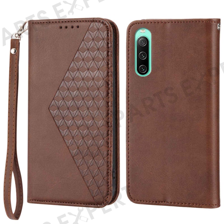 For Sony Xperia 10 IV 5G Calf Texture PU Leather Case Stand Wallet Imprinted Rhombus Pattern Magnetic Phone Cover with Strap - Brown