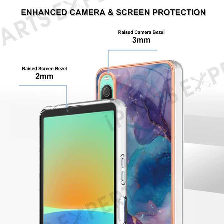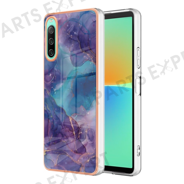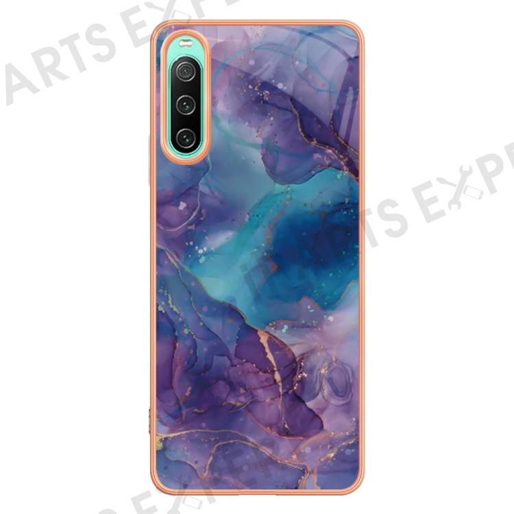 For Sony Xperia 10 IV 5G Shockproof Case Anti-Fall TPU Cover YB IMD Series-16 Style E 2.0mm Marble Pattern IMD Electroplating Phone Case - Purple