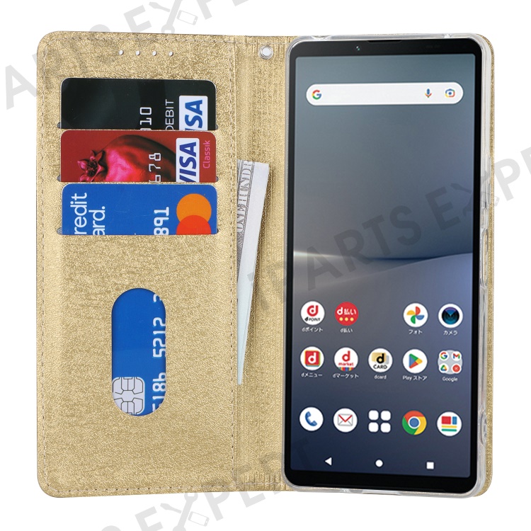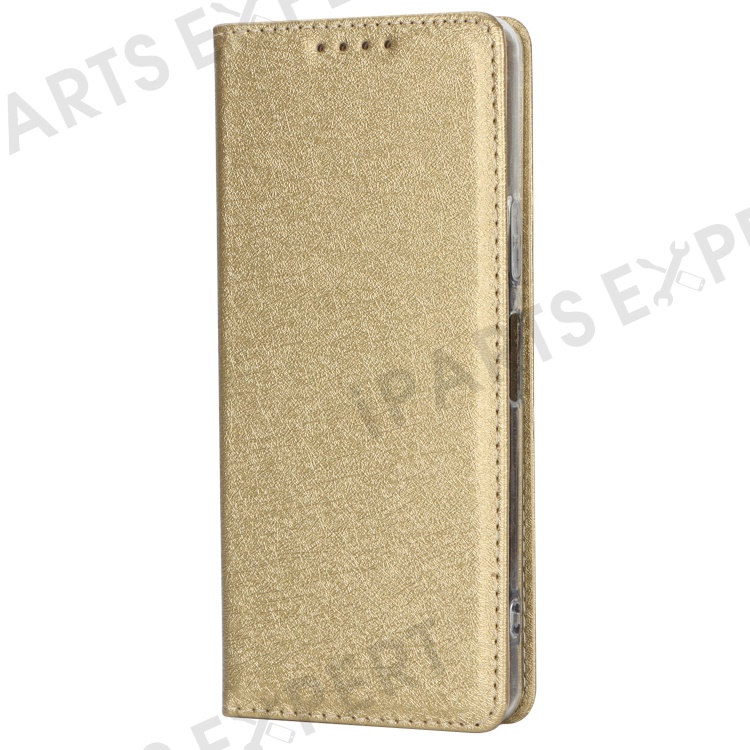 For Sony Xperia 10 V Anti-Fingerprint PU Leather Wallet Phone Case Silk Texture Stand Cover - Gold