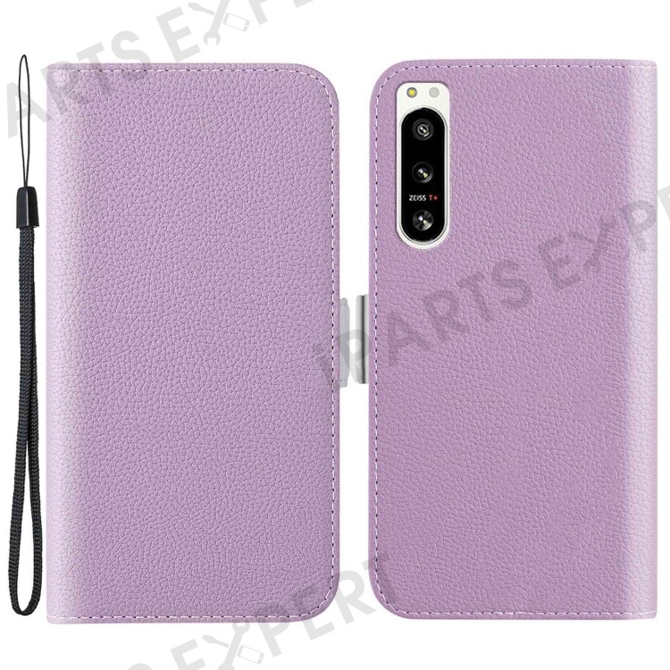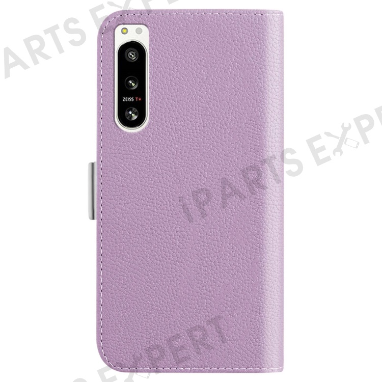 For Sony Xperia 5 IV 5G Cell Phone Cover PU Leather+TPU Litchi Texture Phone Stand Anti-fingerprint Dustproof Wallet Case - Light Purple