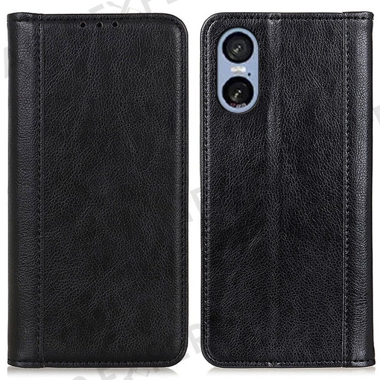 For Sony Xperia 5 VI Wallet Case Split Leather Litchi Texture Phone Cover - Black