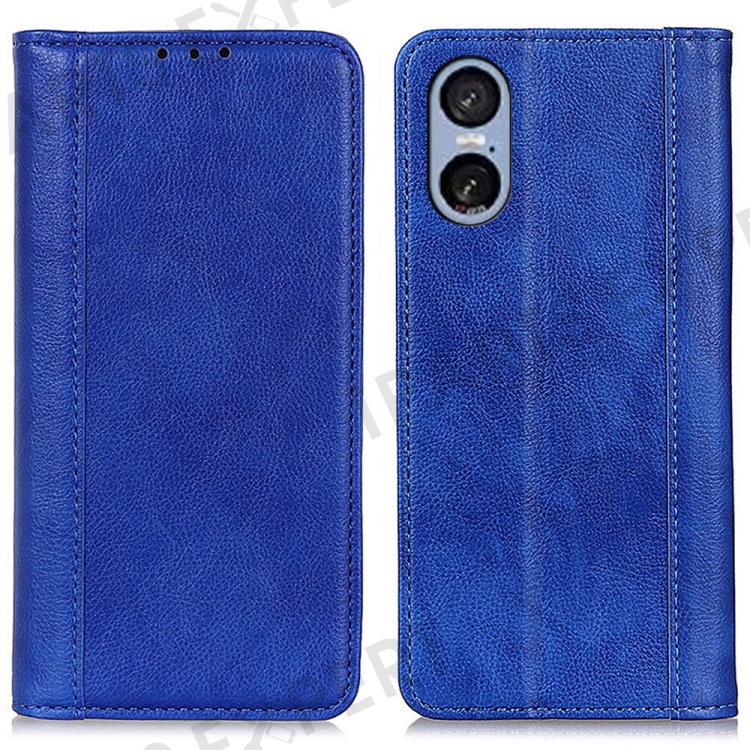 For Sony Xperia 5 VI Wallet Case Split Leather Litchi Texture Phone Cover - Blue