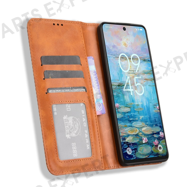 For TCL 50 Pro Nxtpaper 5G / 50 Nxtpaper 5G / TCL P10 / 60 XE NxtPaper 5G Leather Case Wallet Stand Retro Texture Phone Cover - Brown