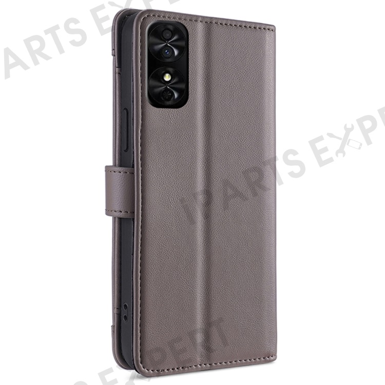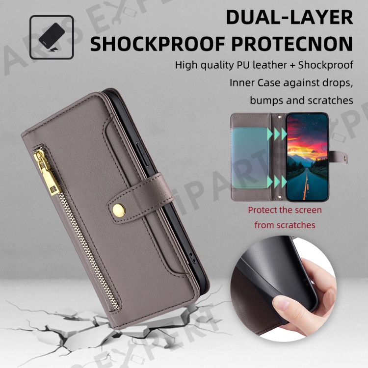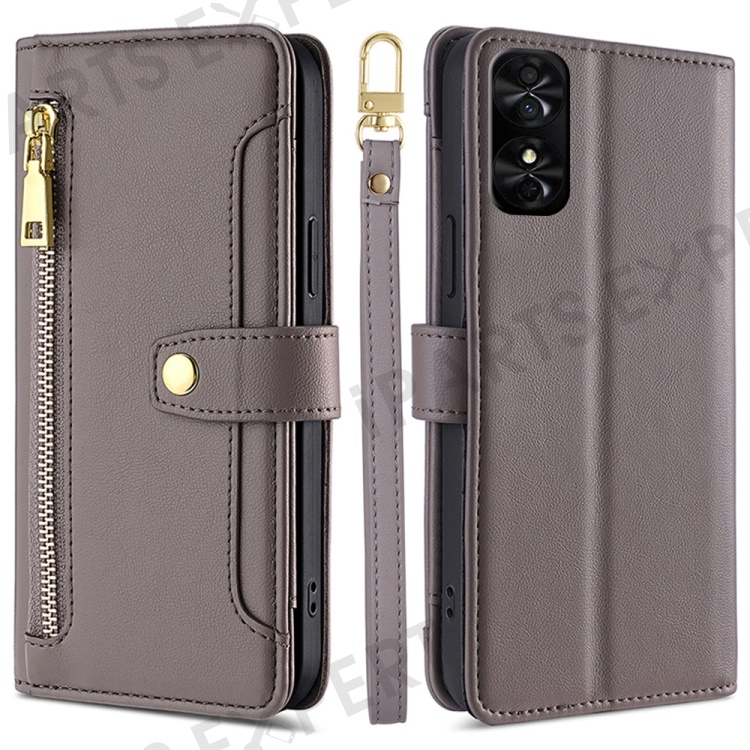 For TCL 50 SE Case Texture Leather Zipper Pocket Stand Flip Phone Cover with 2 Straps - Grey