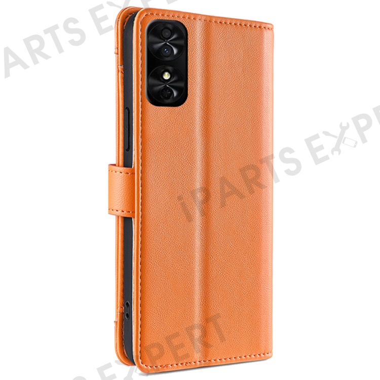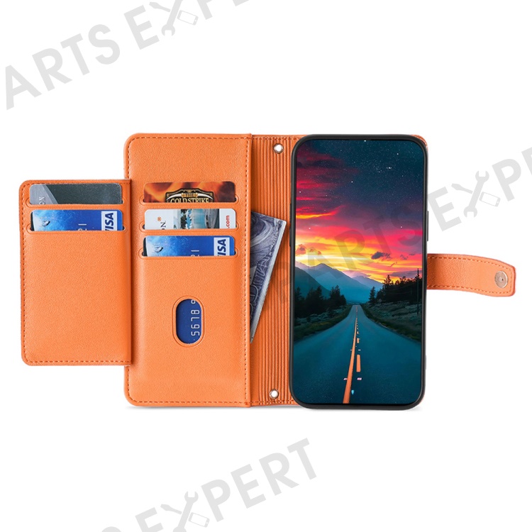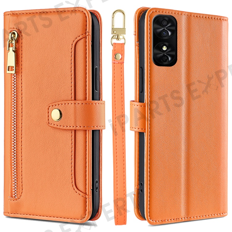 For TCL 50 SE Case Texture Leather Zipper Pocket Stand Flip Phone Cover with 2 Straps - Orange