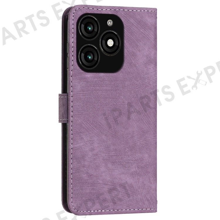 For TECNO Spark 20 Skin Touch Wallet Case PU Leather Stand Flip Phone Cover - Purple
