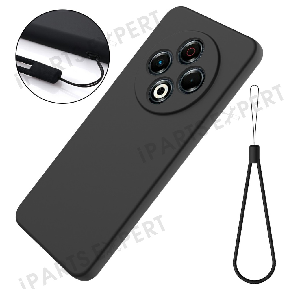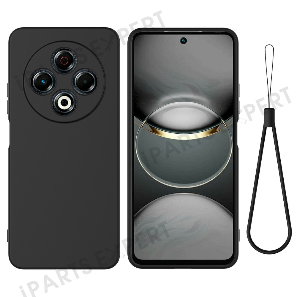 For TECNO Spark 30 4G Case Liquid Silicone Phone Back Cover with Hand Strap - Black