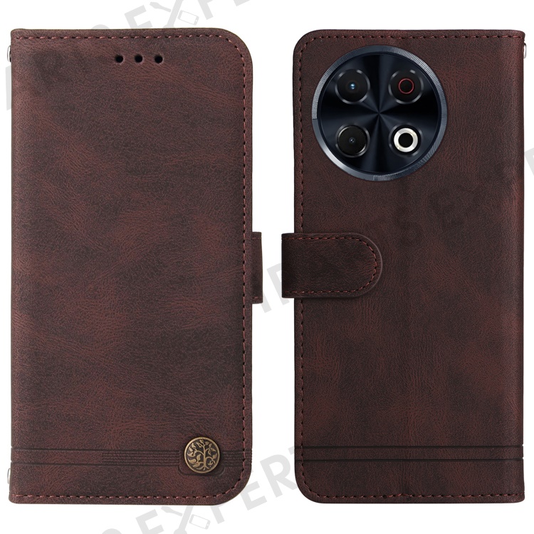 For TECNO Spark 30 Pro 4G Leather Wallet Cases Skin Touch Phone Cover Stand with Strap - Brown