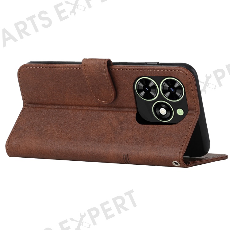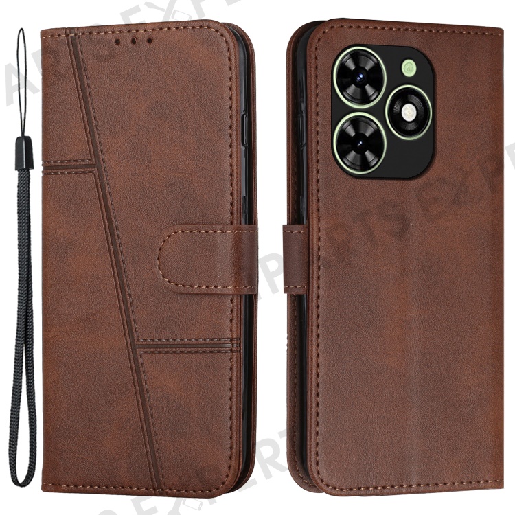 For TECNO Spark Go 2024 4G / Spark 20C / Pop 8 Leather Case Calf Texture Wallet Phone Cover - Brown