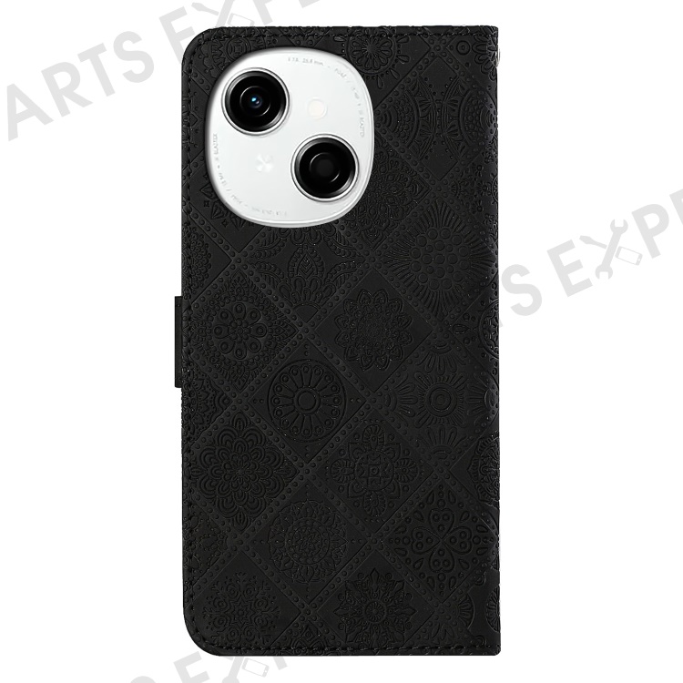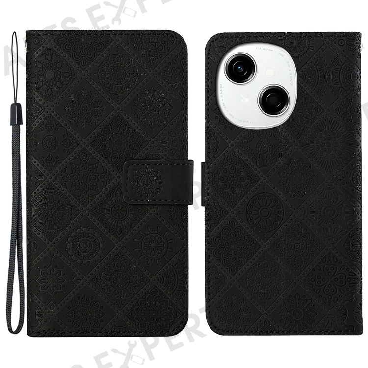 For TECNO Spark Go 2025 / Spark Go 1 / Pop 9 4G Case Leather Case Ethnic Style Wallet Phone Cover with Strap - Black