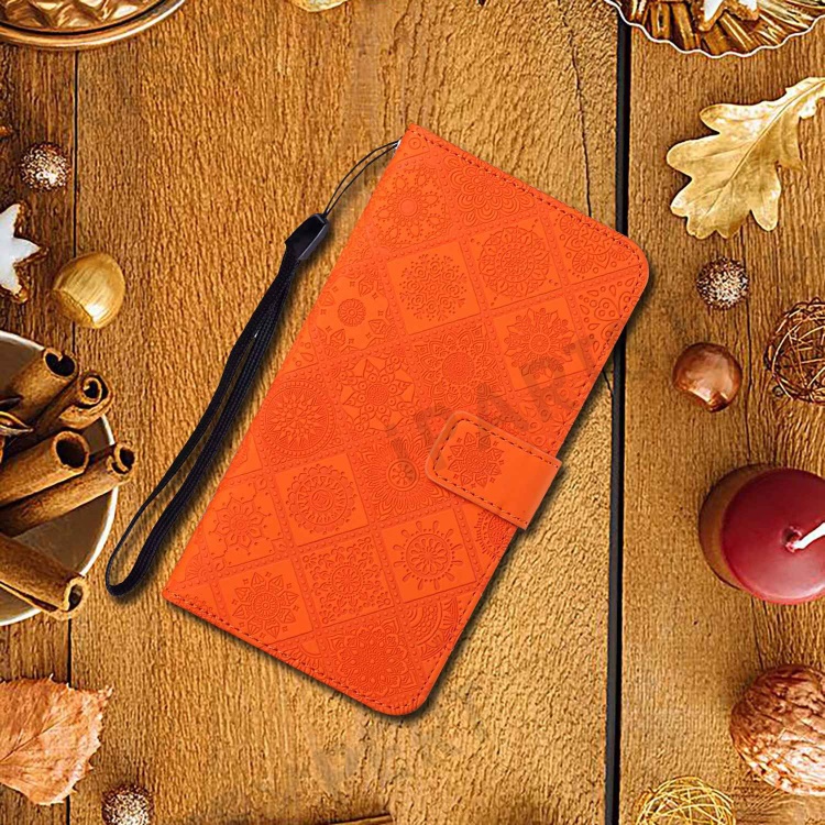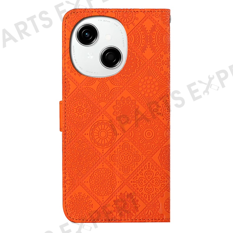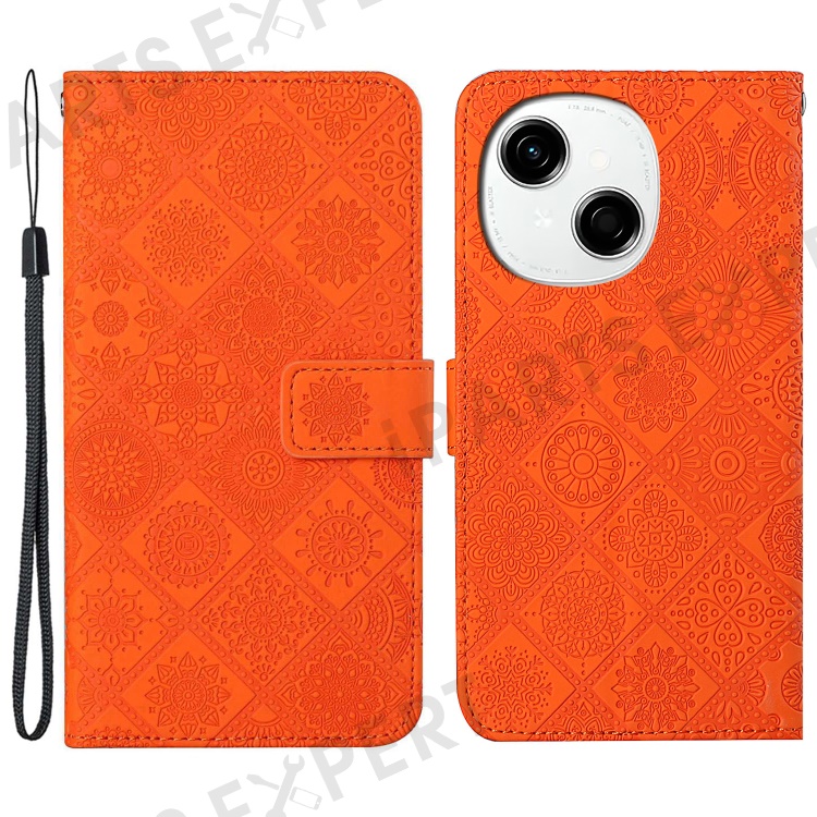 For TECNO Spark Go 2025 / Spark Go 1 / Pop 9 4G Case Leather Case Ethnic Style Wallet Phone Cover with Strap - Orange
