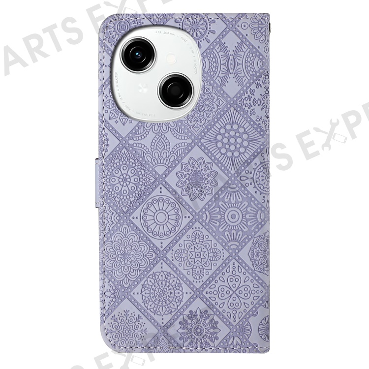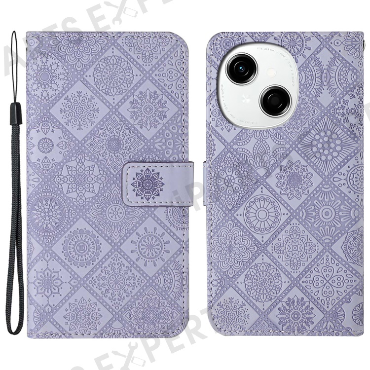 For TECNO Spark Go 2025 / Spark Go 1 / Pop 9 4G Case Leather Case Ethnic Style Wallet Phone Cover with Strap - Purple