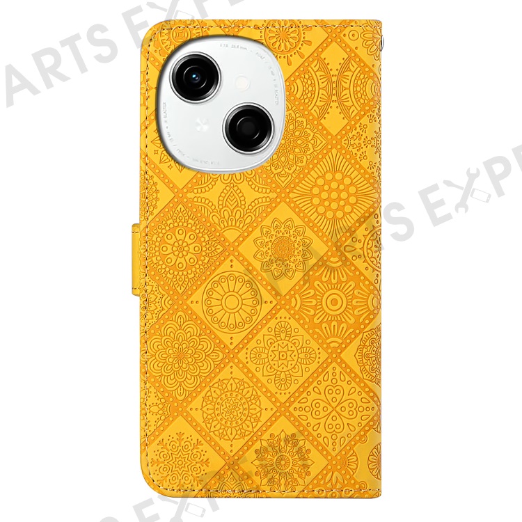 For TECNO Spark Go 2025 / Spark Go 1 / Pop 9 4G Case Leather Case Ethnic Style Wallet Phone Cover with Strap - Yellow