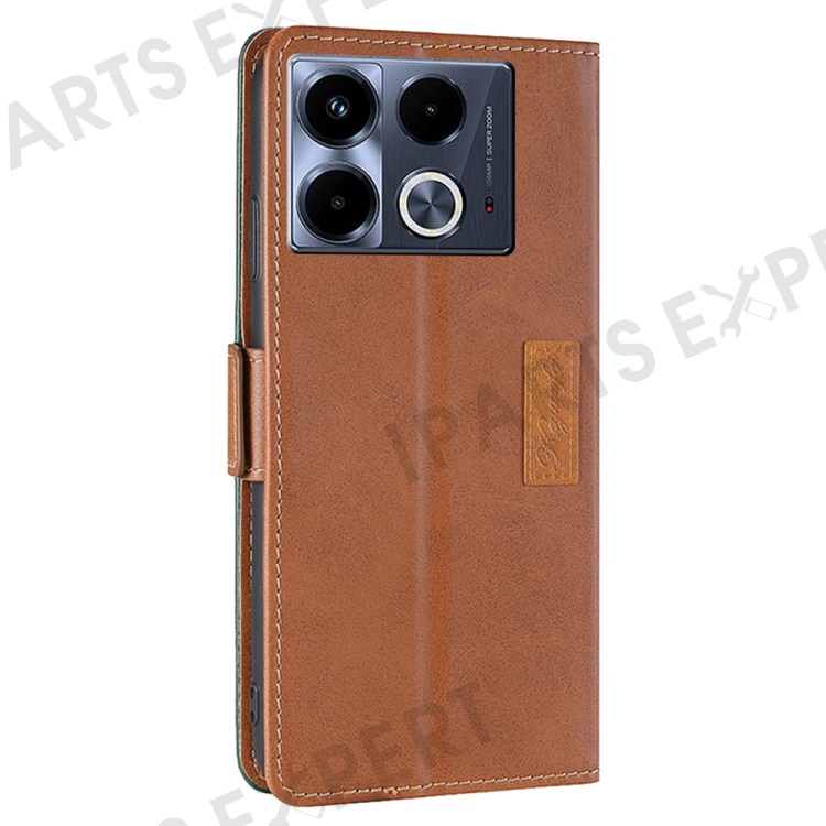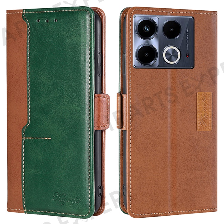 For Infinix Note 40 Case Dual Magnetic Clasp PU Leather Wallet Stand Phone Protective Cover - Light Brown / Green