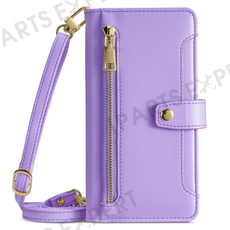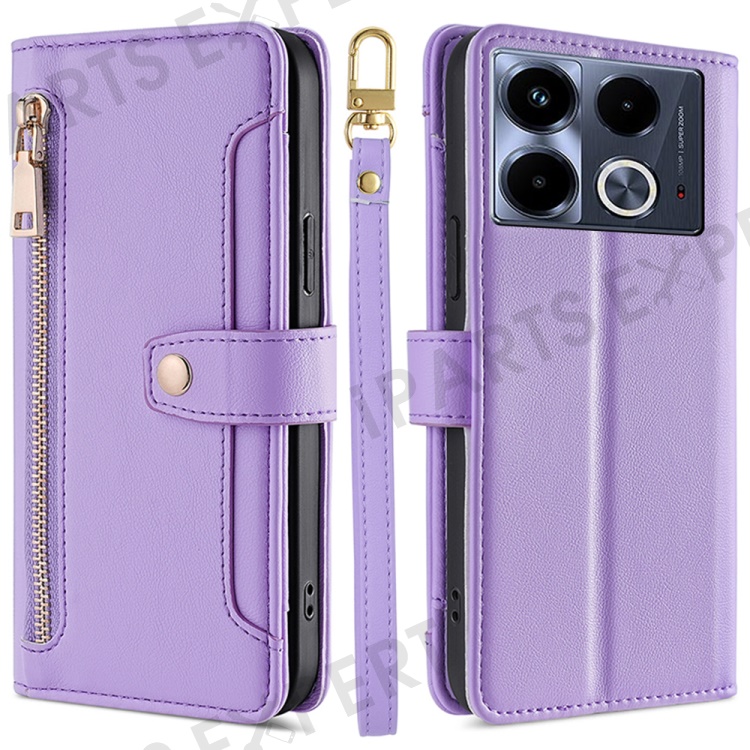 For Infinix Note 40 Leather Case with Shoulder Strap Wallet Stand Phone Cover - Purple
