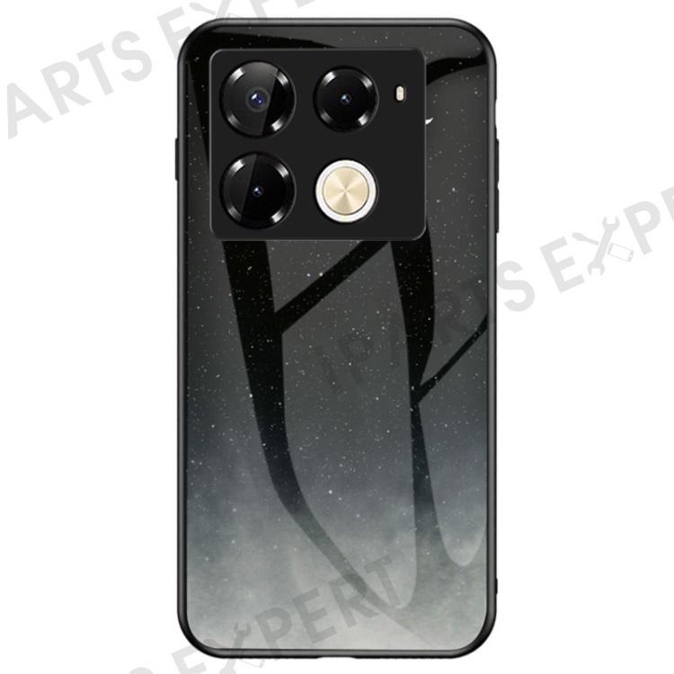 For Infinix Note 40 Pro 4G Case Pretty Starry Sky Pattern Tempered Glass Protective Phone Cover - Starry Crescent Moon