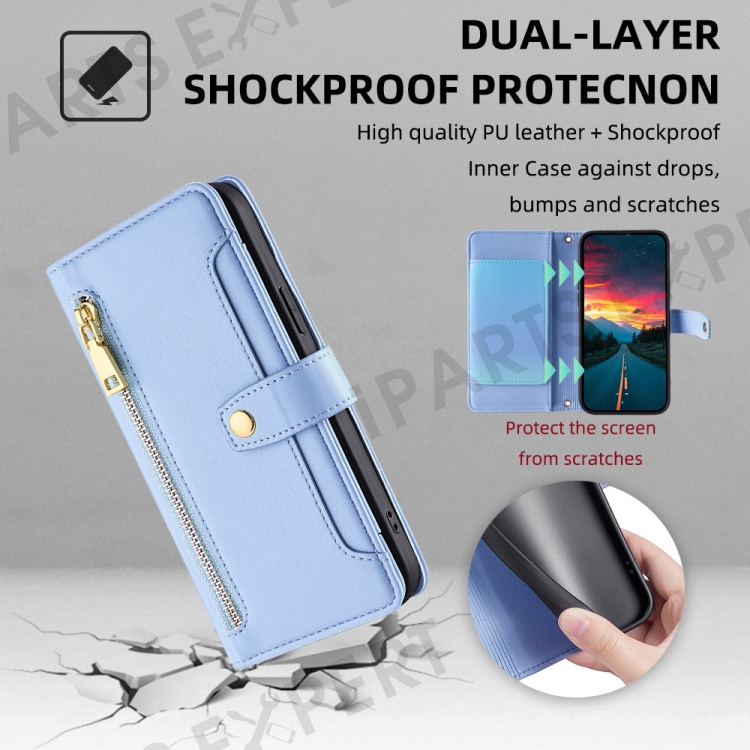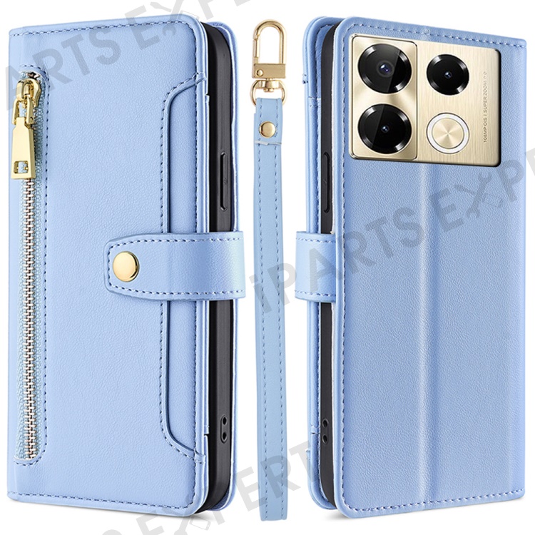 For Infinix Note 40 Pro 4G Crossbody Phone Case PU Leather Wallet Zipper Phone Cover - Blue