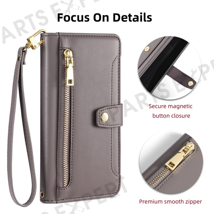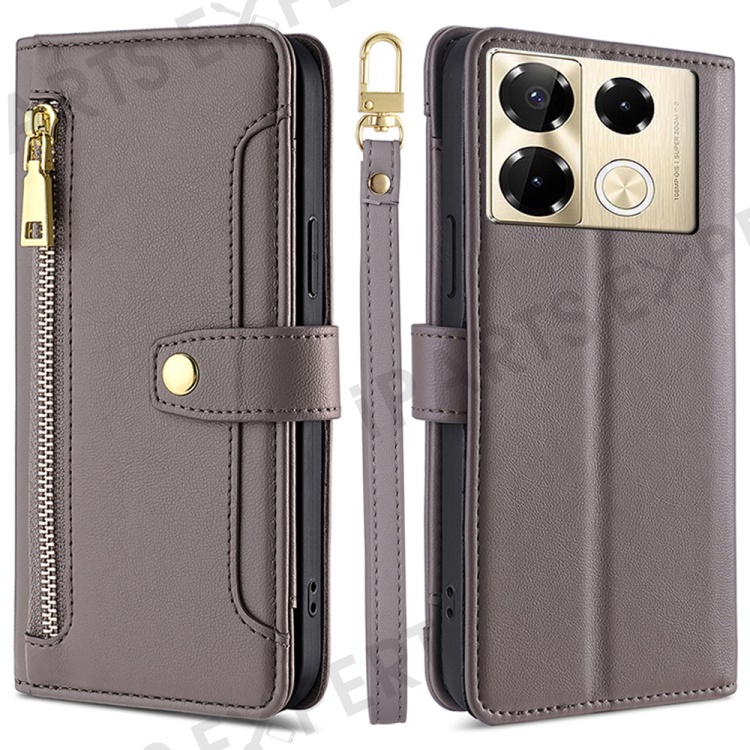 For Infinix Note 40 Pro 4G Crossbody Phone Case PU Leather Wallet Zipper Phone Cover - Grey