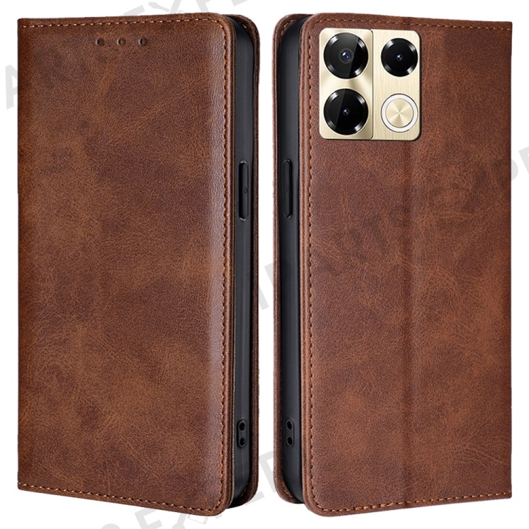 For Infinix Note 40 Pro 5G Case Magnetic Calf Textured Leather Phone Cover - Brown
