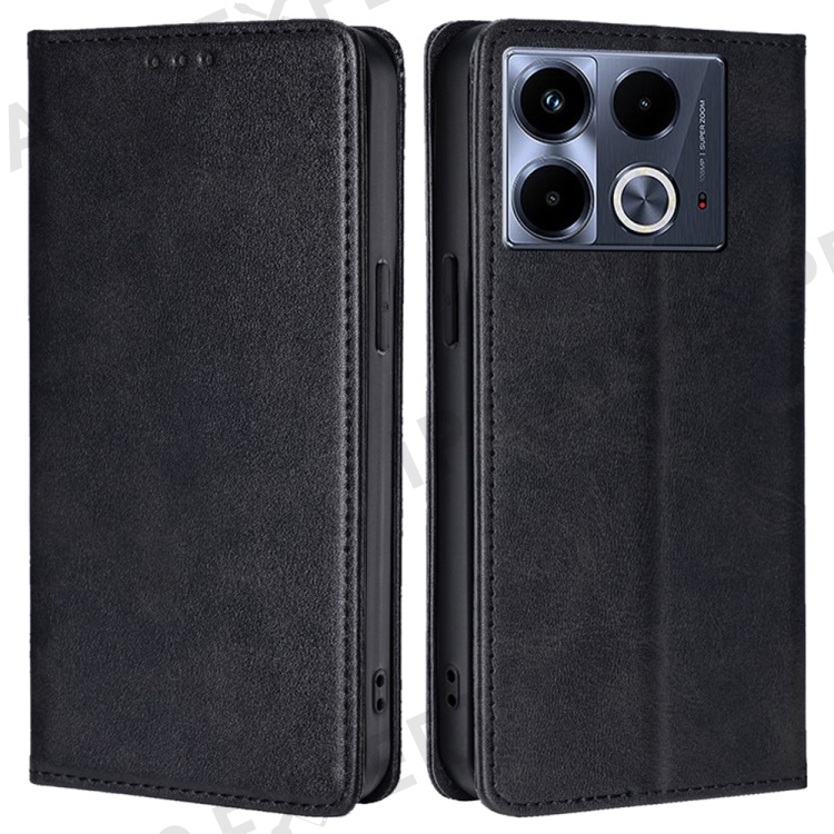 For Infinix Note 40 Stand Case Calf Texture Leather Cover Cell Phone Accessory Wholesale - Black