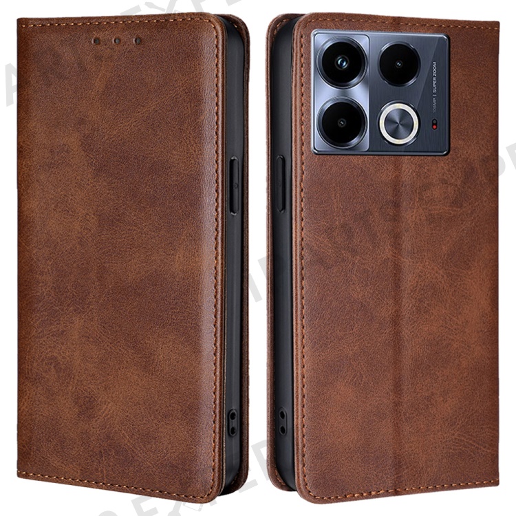 For Infinix Note 40 Stand Case Calf Texture Leather Cover Cell Phone Accessory Wholesale - Brown