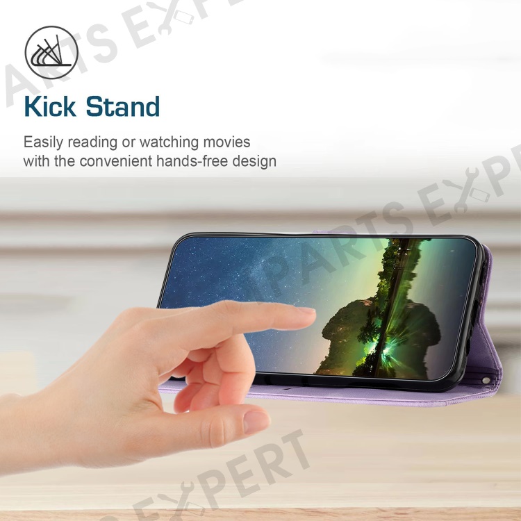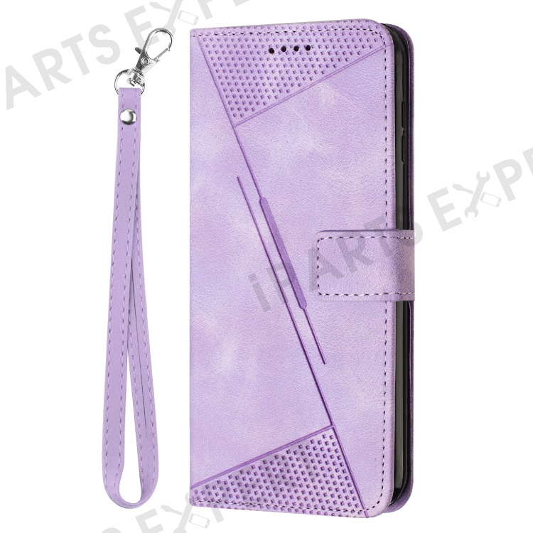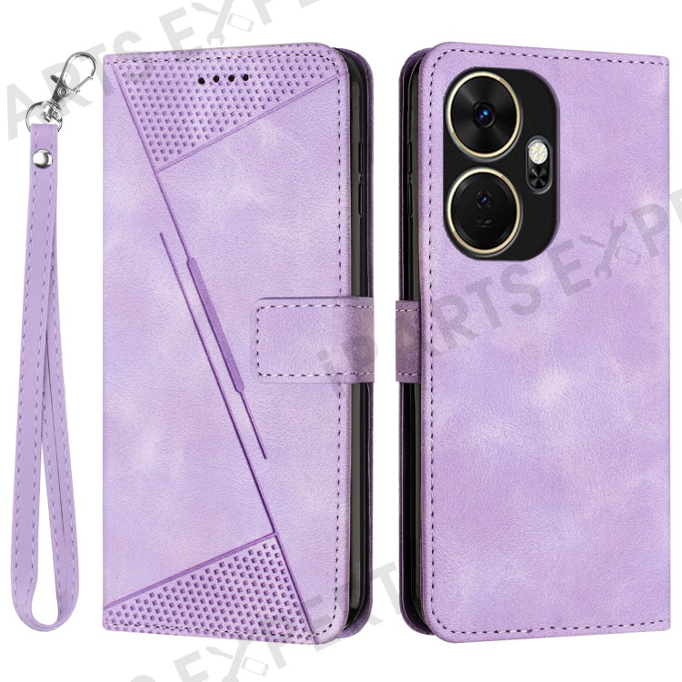 For itel P55+ Wallet Case Triangle Imprinted Stand Leather Phone Cover - Purple